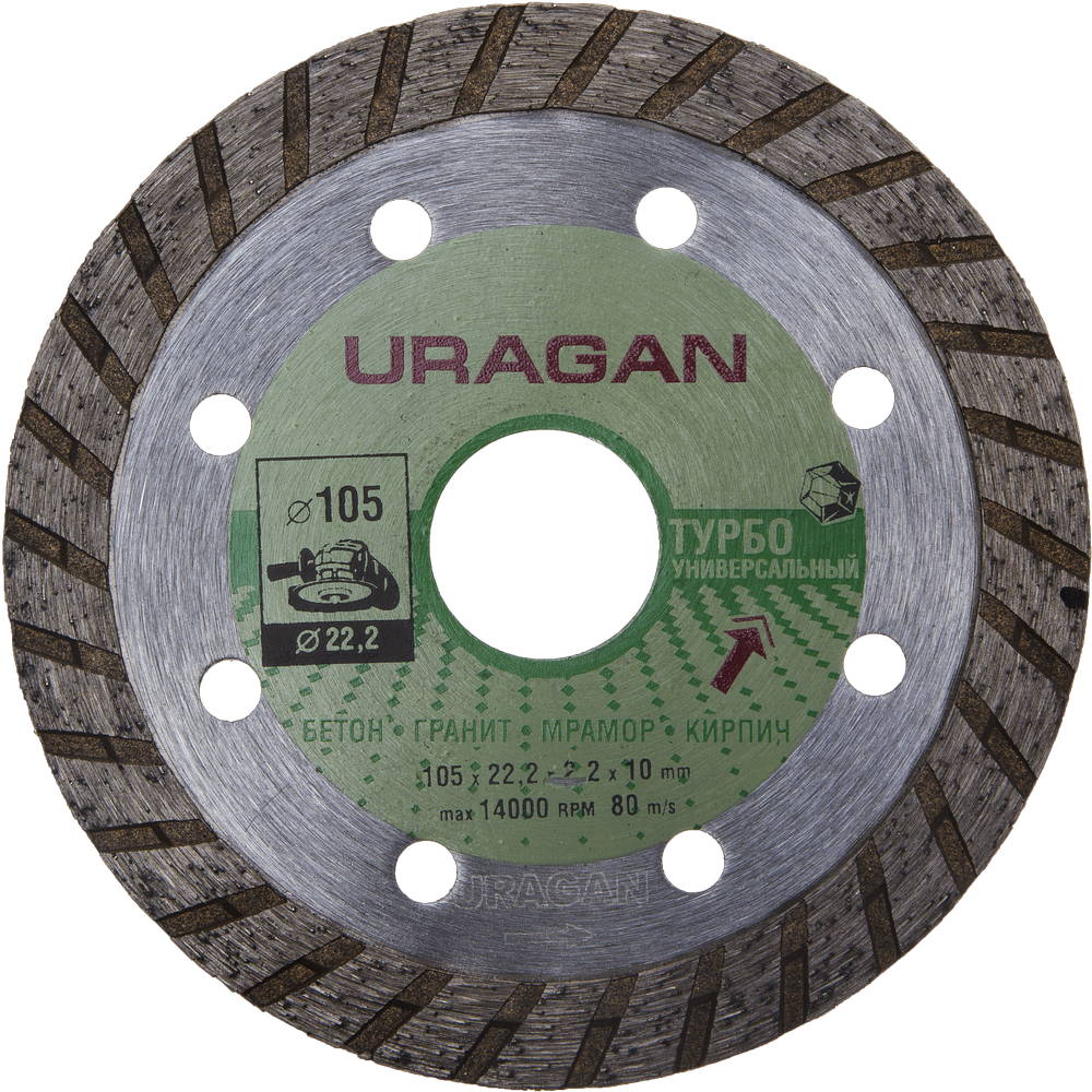 URAGAN ТУРБО 105 мм (22.2 мм, 10х2.2 мм), Алмазный диск (909-12131-105)