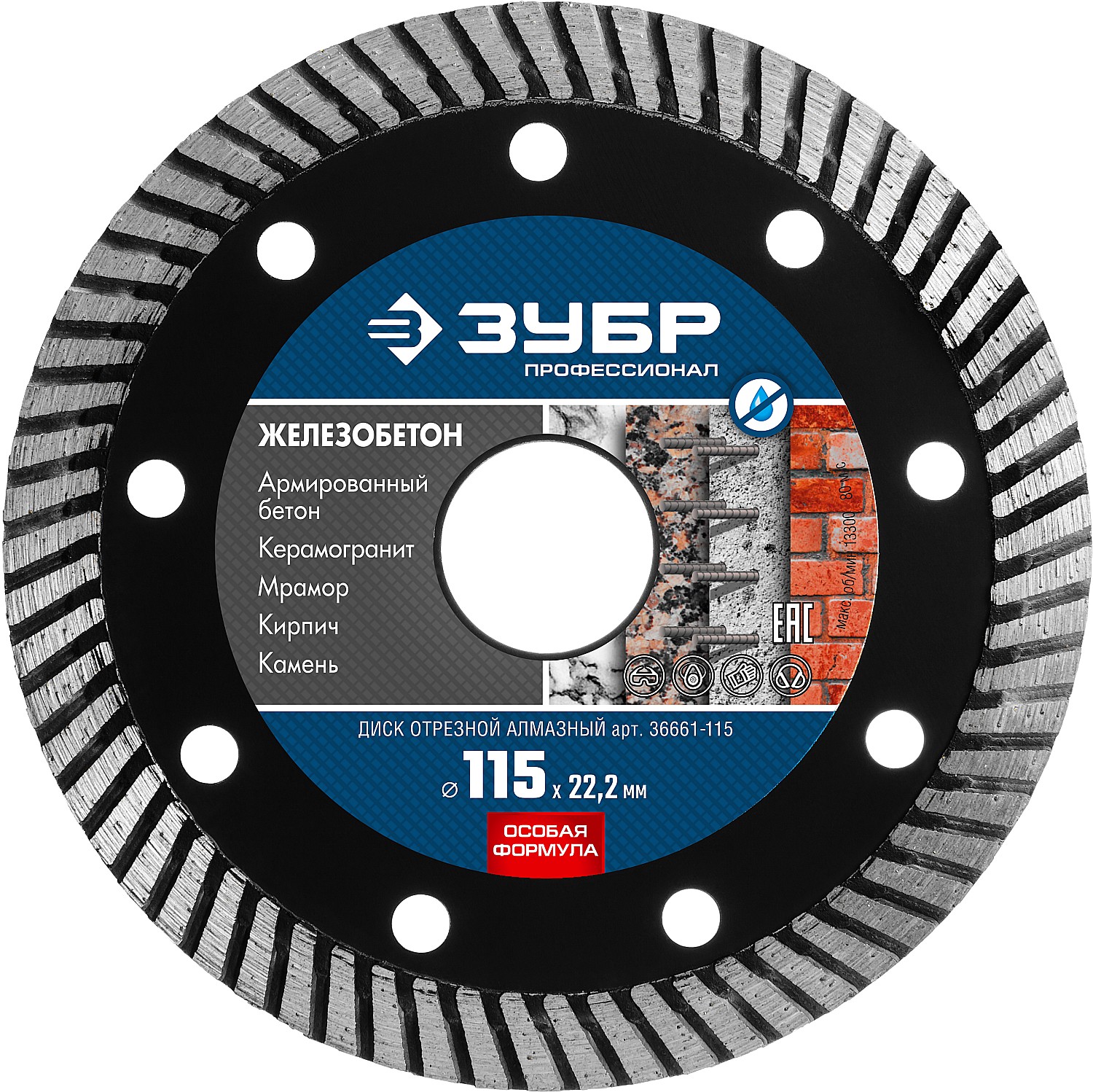ЗУБР ЖЕЛЕЗОБЕТОН 115 мм (22.2 мм, 10х2.4 мм), алмазный диск, ПРОФЕССИОНАЛ (36661-115)