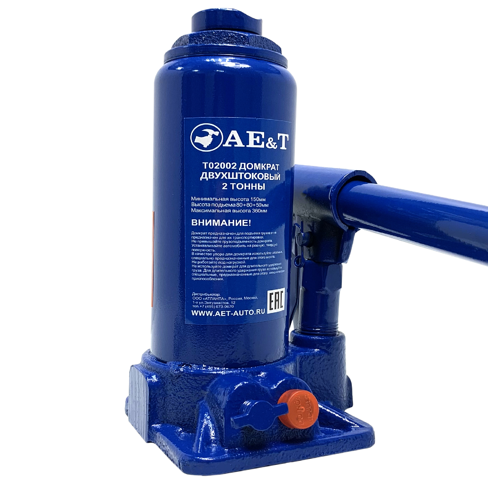 Домкрат бутылочный двухштоковый T02002 AE&T 2т