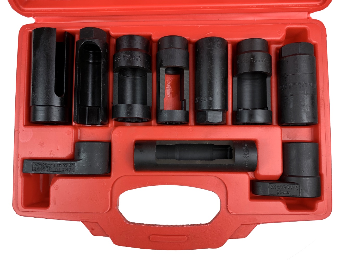 Головки вакуумного регулятора 2шт 7/8" x 3/8"Dr;Головка вакуумного регулятора 29мм x 1/2"Dr;Головка вакуумного регулятора длинная 7/8" x 1/2Dr;Головка датчика давления масла 1" и 1-1/16" x 3/8"Dr;Головка датчика кислорода 7/8" x 3/8"Dr;Головка датчика кислорода 7/8" x 1/2"Dr;Головка инжектора 7/8" x 1/2"Dr;Головка инжектора 27мм x 1/2"Dr;Головка инжектора 28мм x 1/2"Dr.