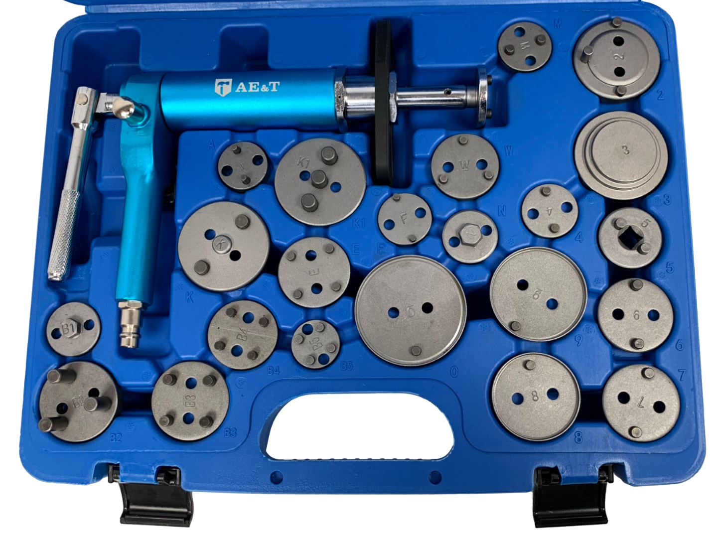Инструмент сведения тормозных цилиндров TA-B1073 это комплект из 21 приспособлений для возврата тормозных поршней автомобилей.