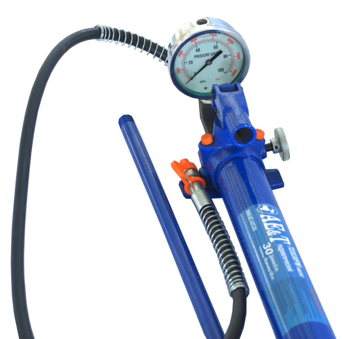 Оснащен манометром для визуального контроля давления масла.