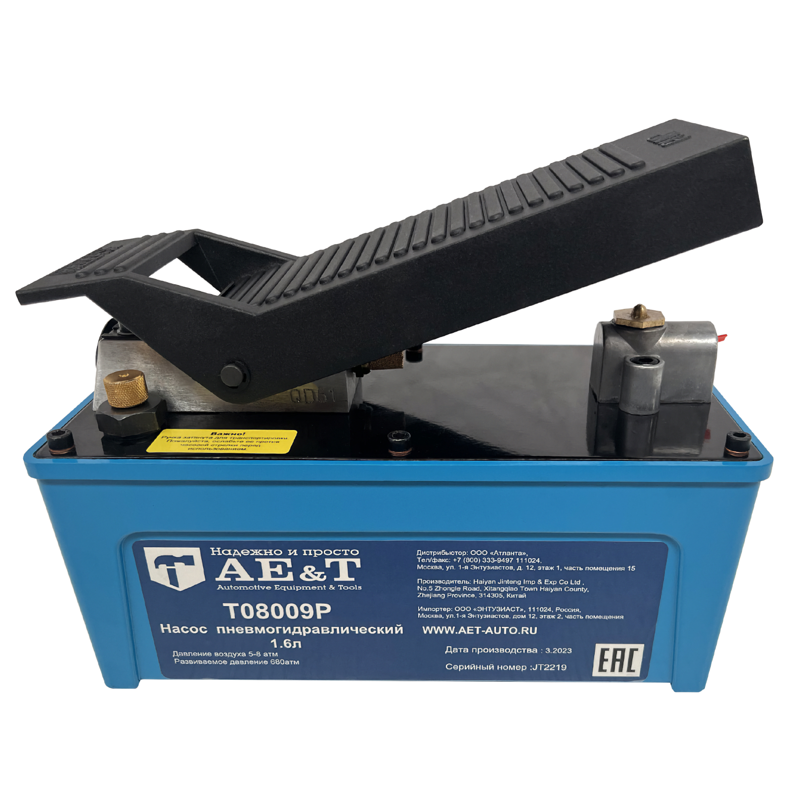 Насос гидравлический с пневматический приводом и ножным управлением. Шланг 1,5м в комплекте.