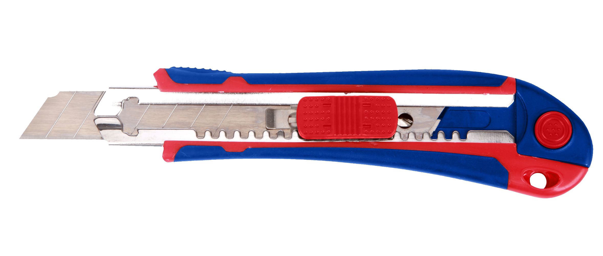 Стандартный пластиковый нож с заменяемыми лезвиями 18мм и механизмом упрощенной загрузки