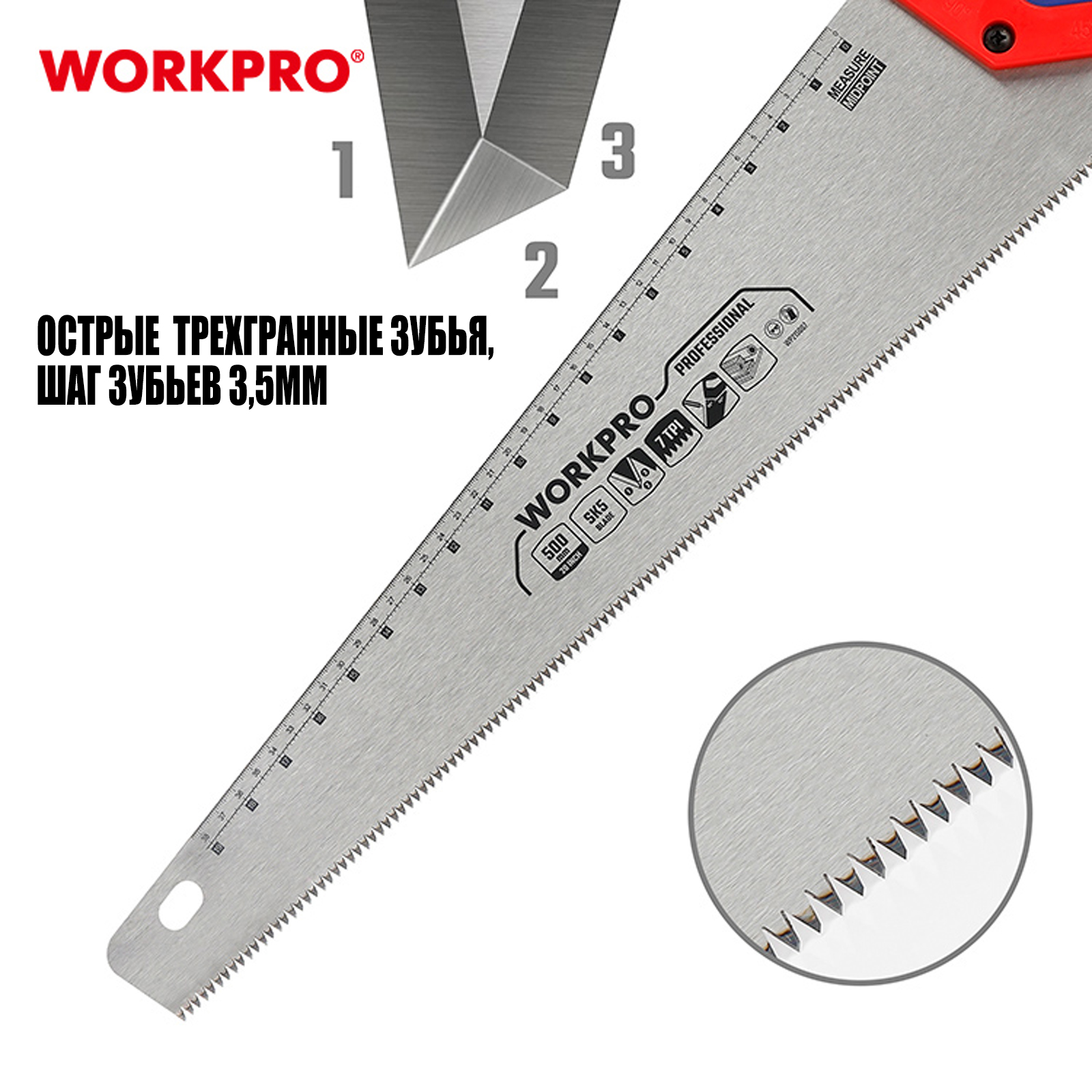 Ножовка по дереву SK5 500 мм 7TPI WP215007 WORKPRO