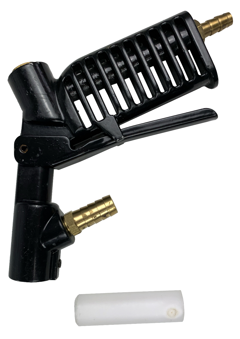 Пистолет пескоструйный T06528G для аппарата T06528. Оснащен щеткой и выходом для обратного сбора абразива. Производится из прочных материалов.