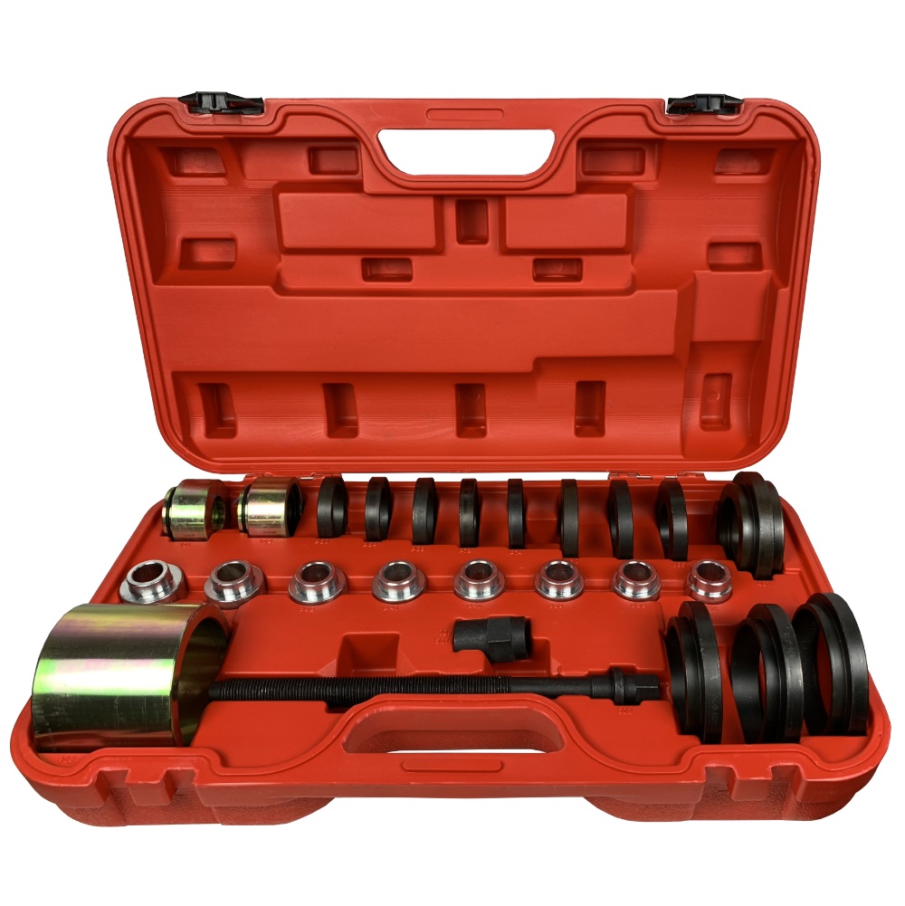 Съемник TA-D1122 пригодится при работах по монтажу/демонтажу подшипников подвески переднеприводных автомашин. В комплекте 25 предметов, упакованных в прочный пластиковый кейс.