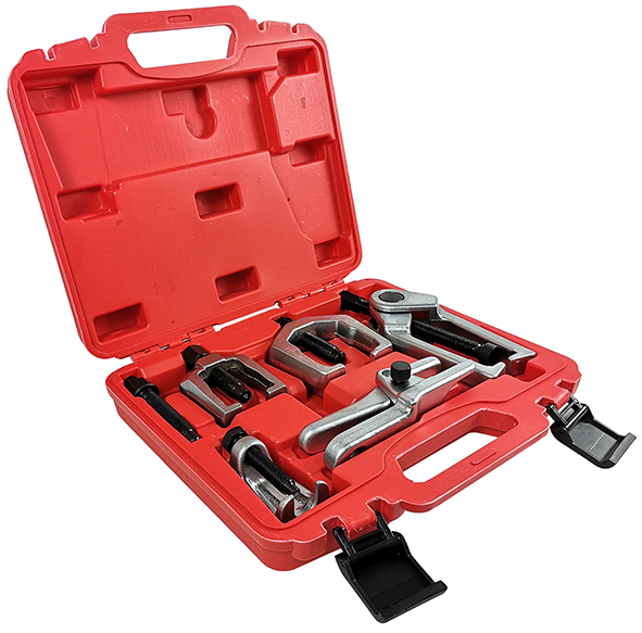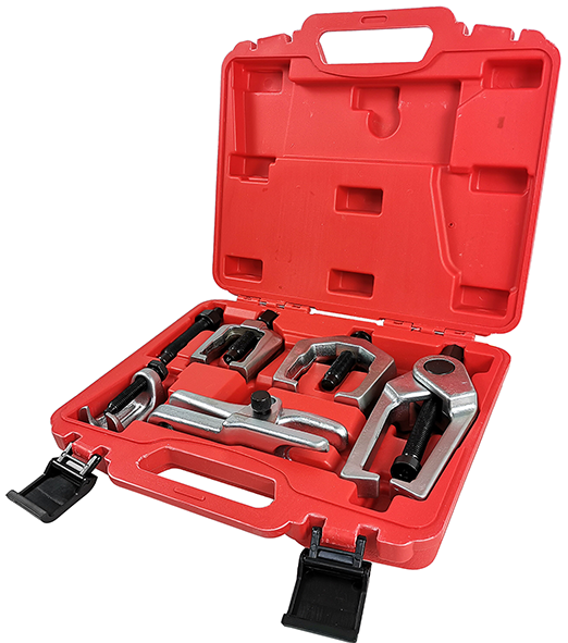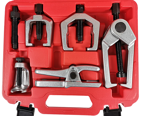 В комплект входят: съемник шарового шарнира, сепаратор, съемник сошки, съемник шаровой/наконечника поперечной рулевой тяги, съемник наконечников рулевых тяг.