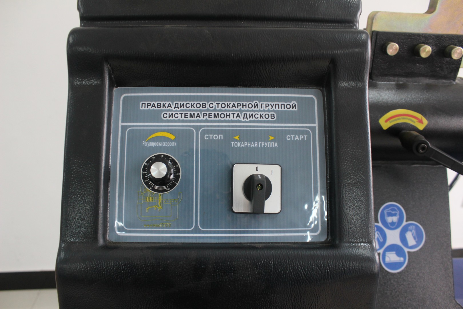 Станок оборудован токарной группой для проточки колесного диска.