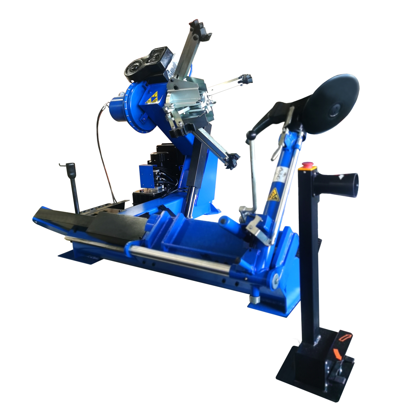В модели предусмотрено зажимное устройство с гидравлическим приводом, переносная стойка управления и подвижная консоль монтажного инструмента. Благодаря передвижной платформе для размещения колеса можно быстро переместить монтажную консоль к требуемому борту шины.