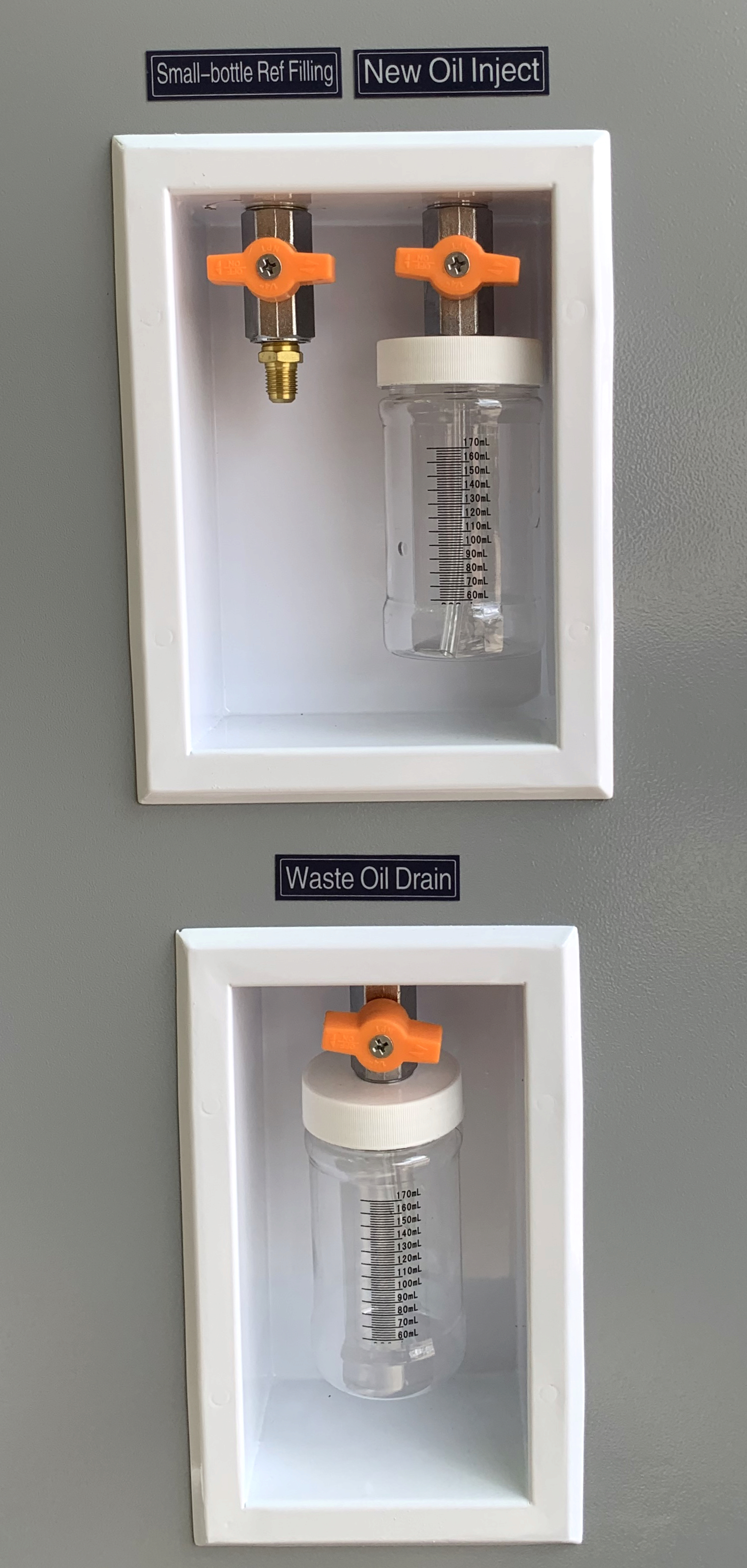- Дренаж и заправка масла из/в систему кондиционирования.