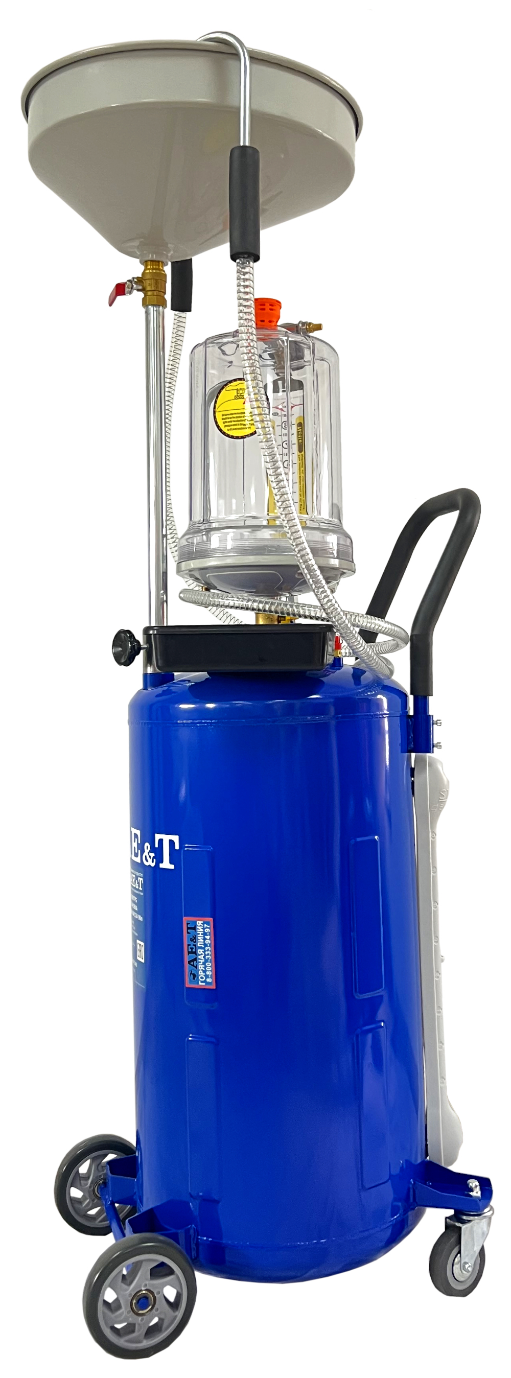 · Все необходимые аксессуары в наборе: прозрачная предкамера объемом десять литров, шланги, воронка, шесть щупов, поворотные колеса.