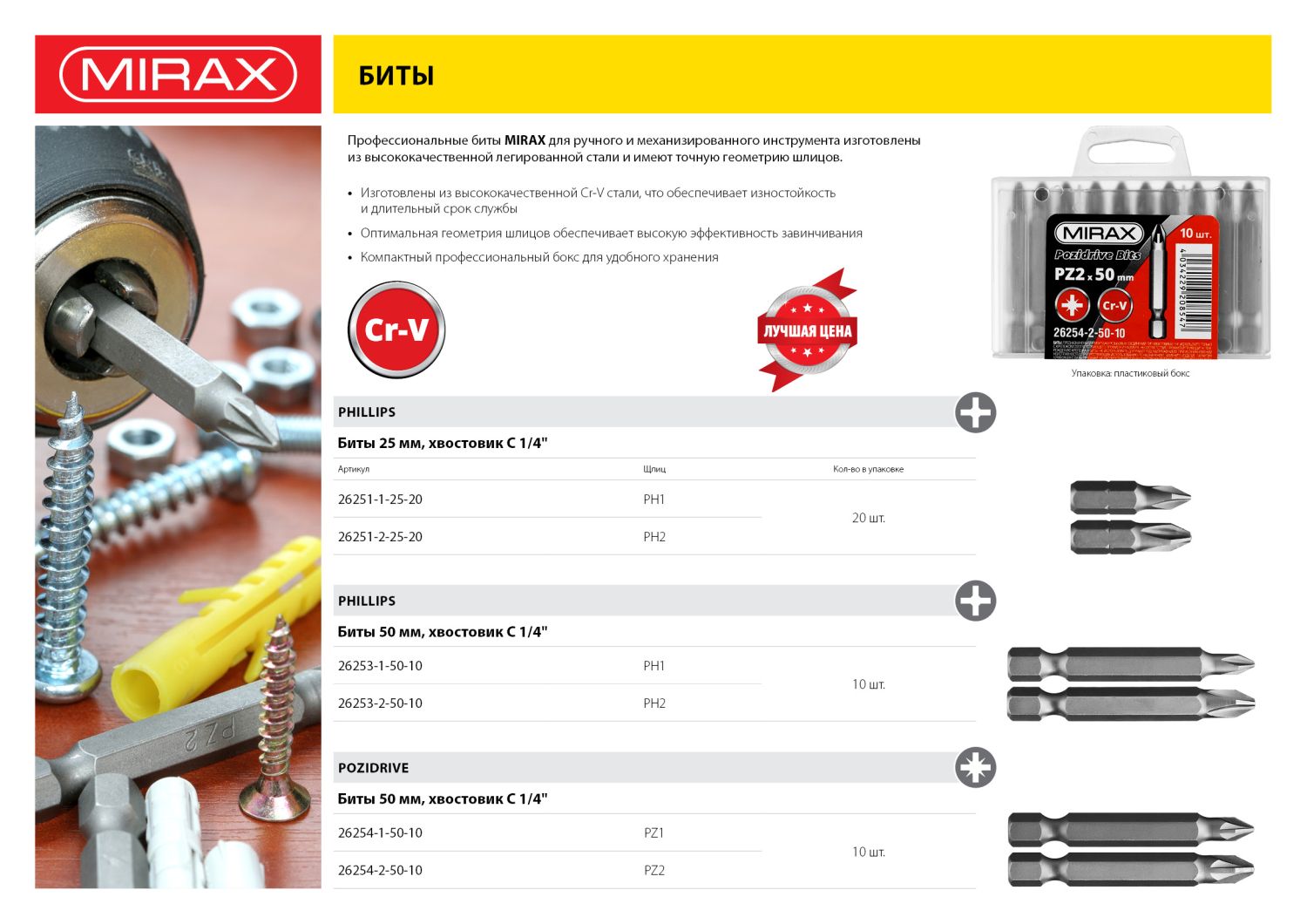 Профессиональные биты для ручного и механизированного инструмента изготовлены из высококачественной легированной стали и имеют точную геометрию шлицов, что обеспечивает длительный срок службы.