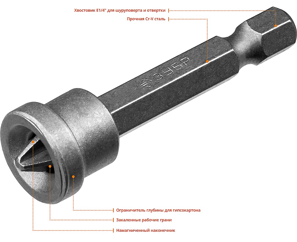 • •Длина биты 50 мм. Хвостовик E 1/4″