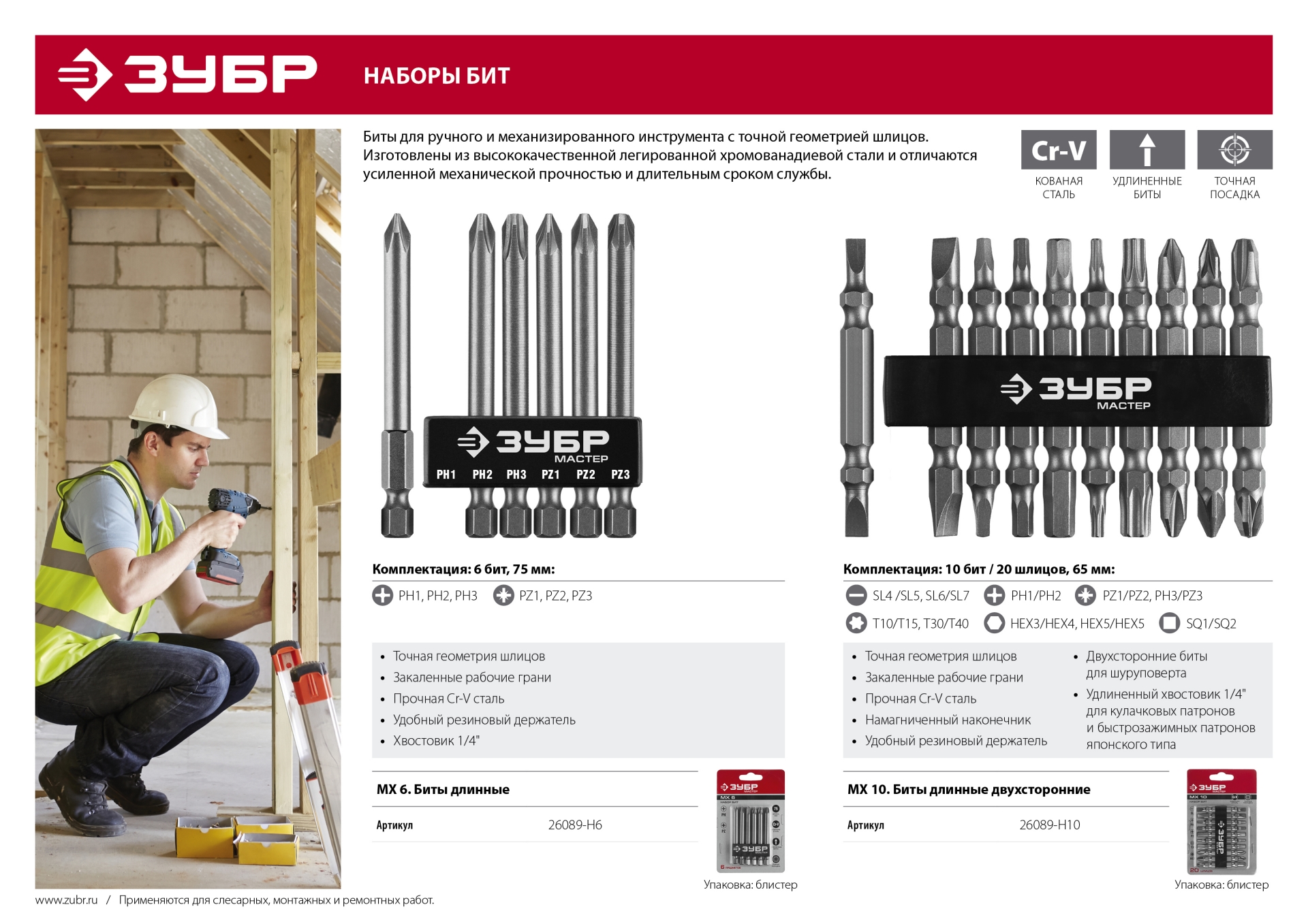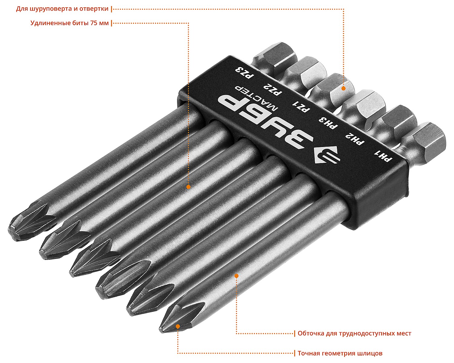 Профессиональные биты ЗУБР для ручного и механизированного инструмента изготовлены из высококачественной стали и имеют точную геометрию шлицов, что обеспечивает длительный срок службы.