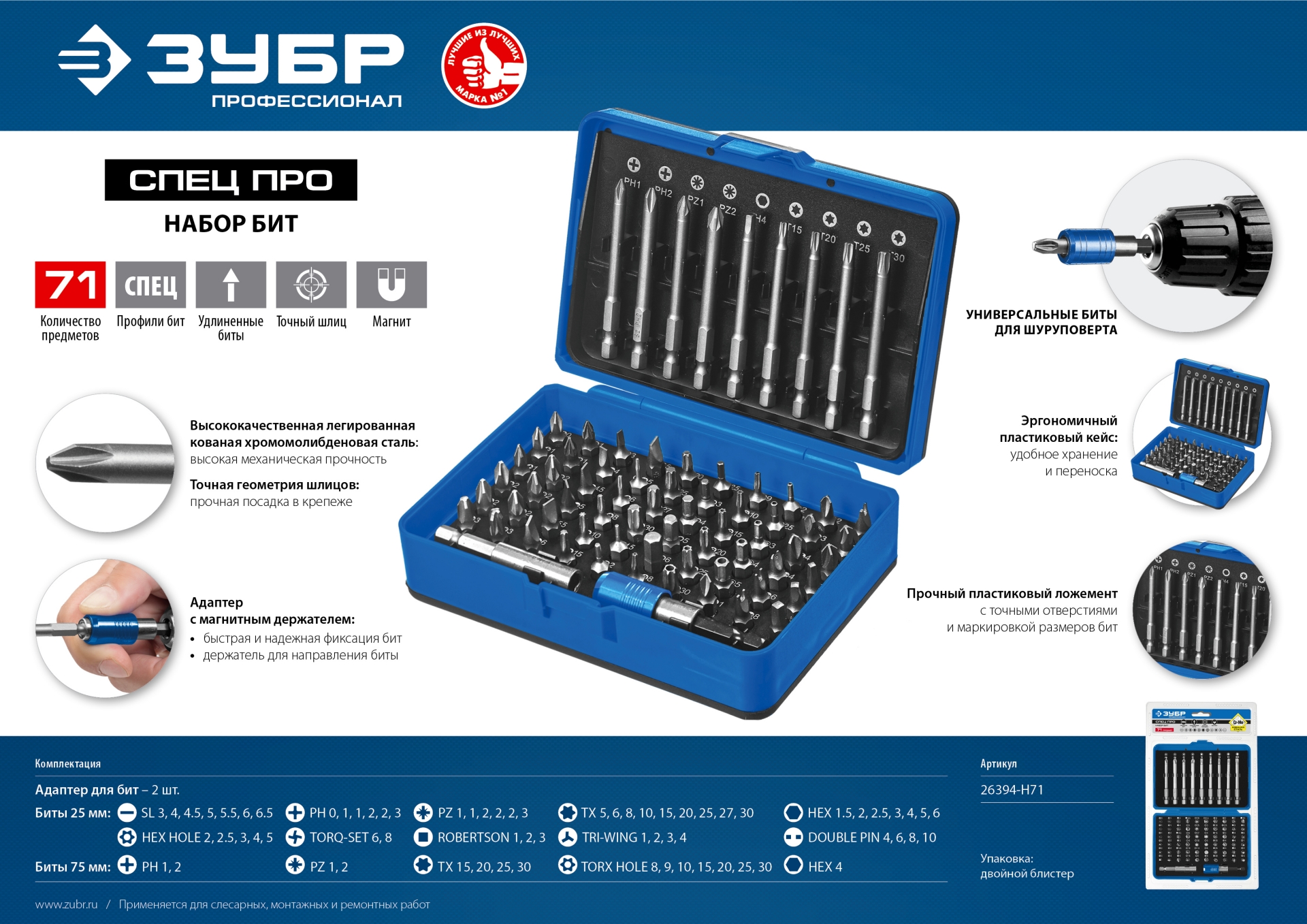 ЗУБР Про-71 Набор бит, Профессионал (26394-H71)