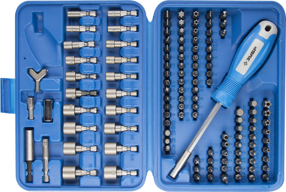Универсальный набор профессиональных бит «ЗУБР» предназначен для для монтажа и демонтажа резьбовых соединений.