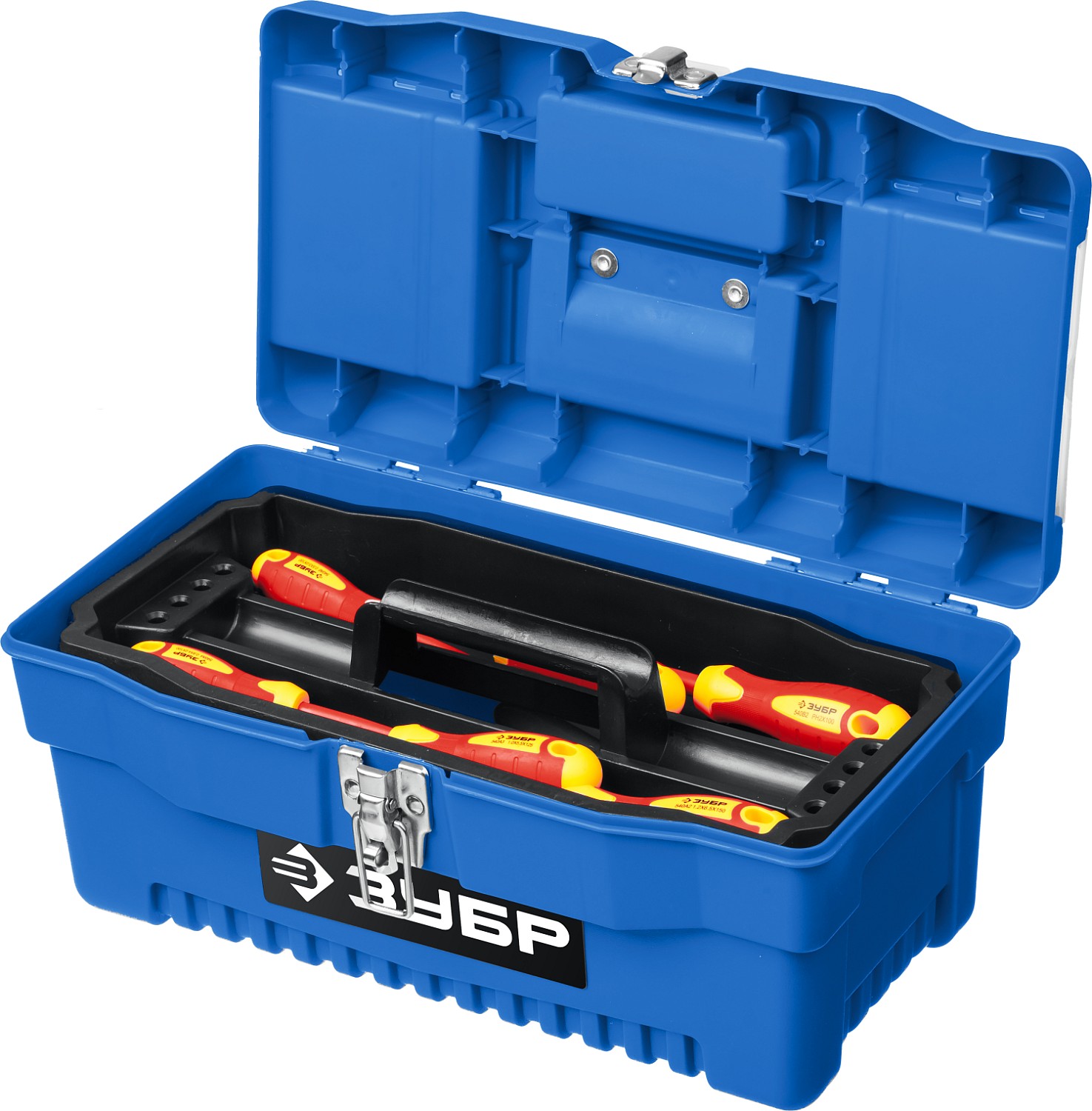 - Ящик инструментальный 16″ с двумя съемными контейнерами для мелких деталей обеспечивает дополнительное удобство в работе