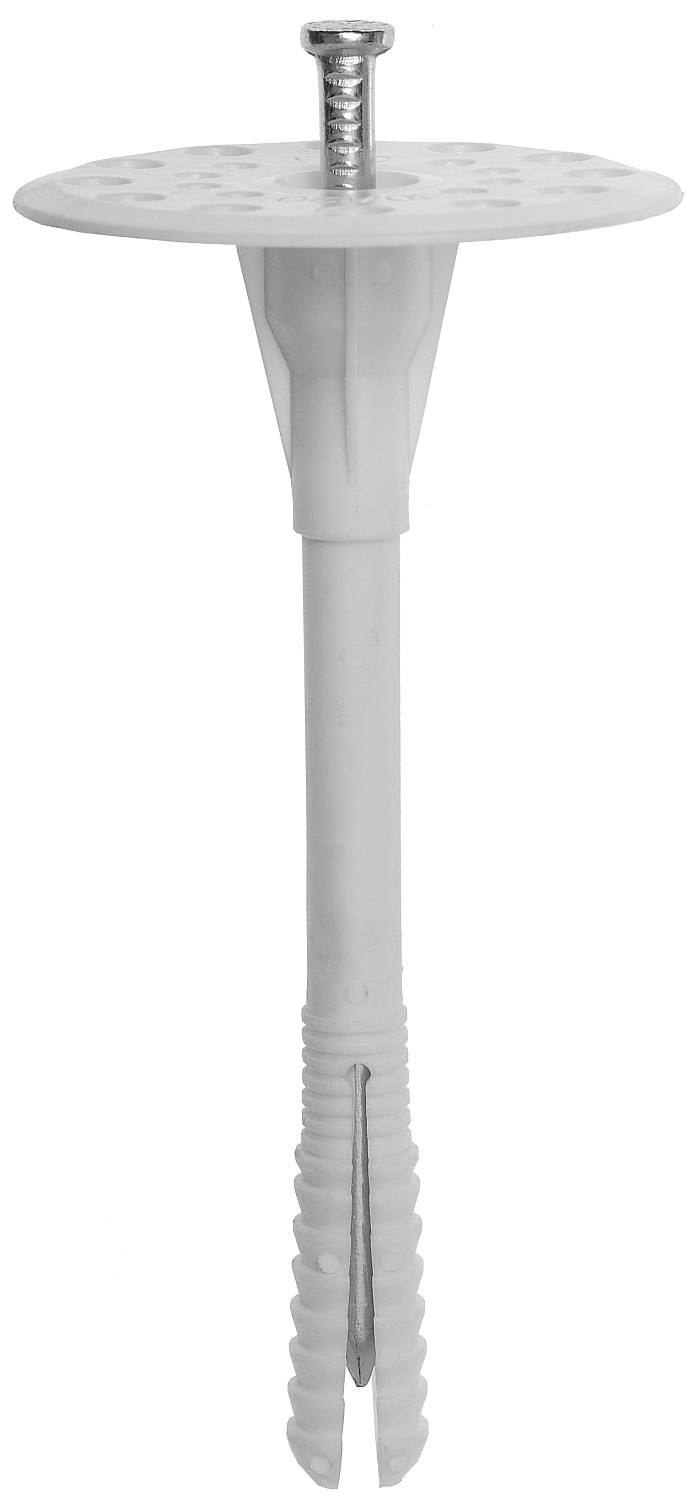 Дюбели для теплоизоляции изготовлены из высококачественных материалов. Большой диаметр головки дюбеля позволяет крепить как твердые, так и мягкие теплоизоляционные материалы (минеральную вату, стекловату, полистирол, пенопласт и др.), препятствуя их разрыву или повреждению в месте крепления.