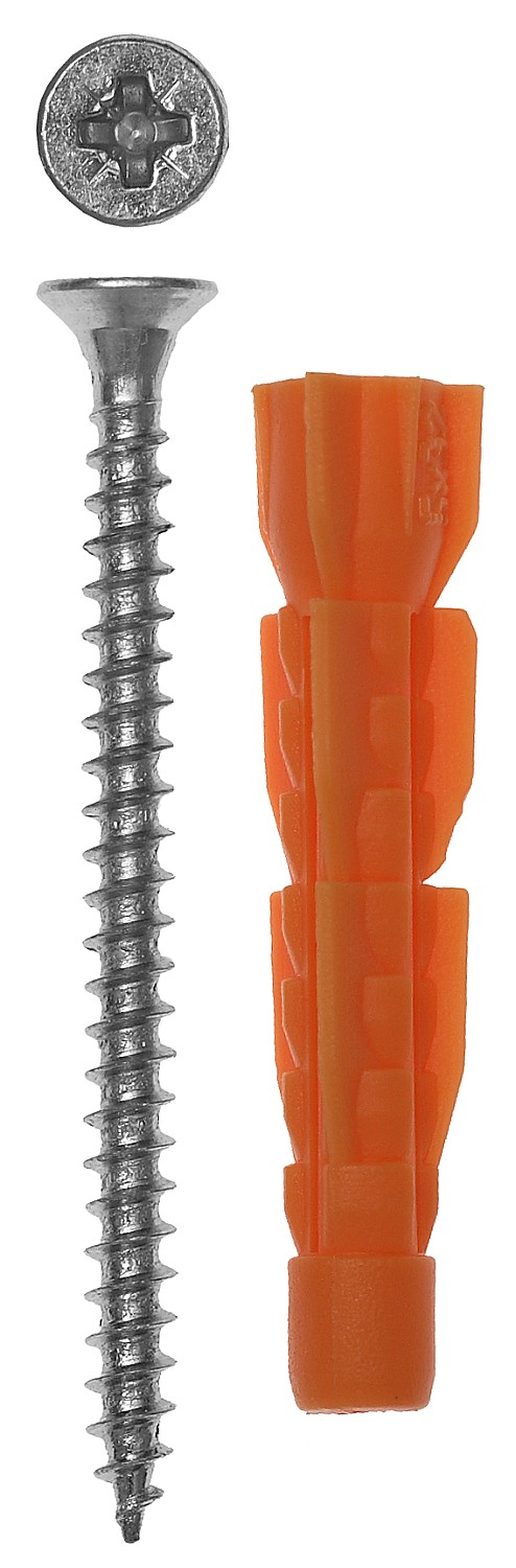 Для монтажа элементов и конструкций к полнотелым (бетон, кирпич, природный камень), пустотелым (кирпичи с пустотами, блоки и т.п.) и тонкостенным (фанера, ДСП, гипсокартон и т.п.) строительным материалам. Фиксация дюбеля происходит при вкручивании в него самореза (входит в комплект поставки). Диаметр предварительного сверления: 8 мм.