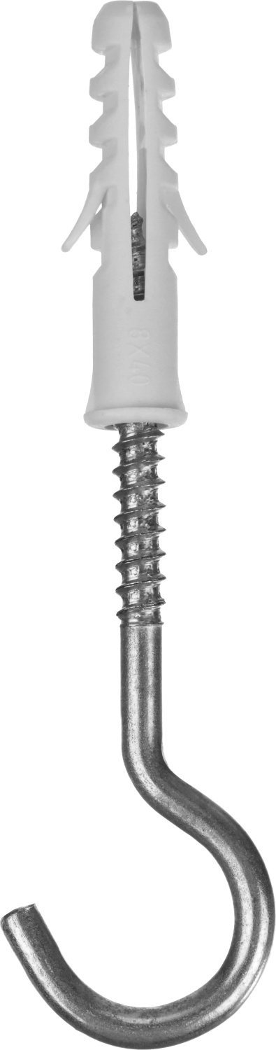 ЗУБР ЕВРО 8х40 / 5х75 мм, распорный дюбель полипропиленовый с шурупом-крюком, 6 шт (30686-08-40)