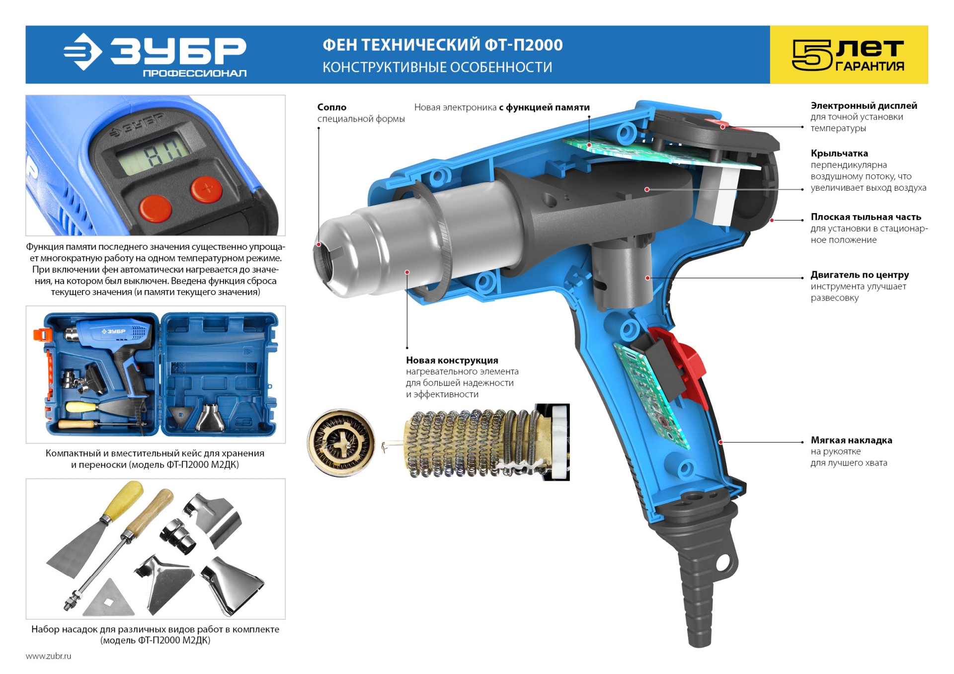 ЗУБР 2000 Вт, технический фен, дисплей, кейс, Профессионал (ФТ-П2000 М2ДК)