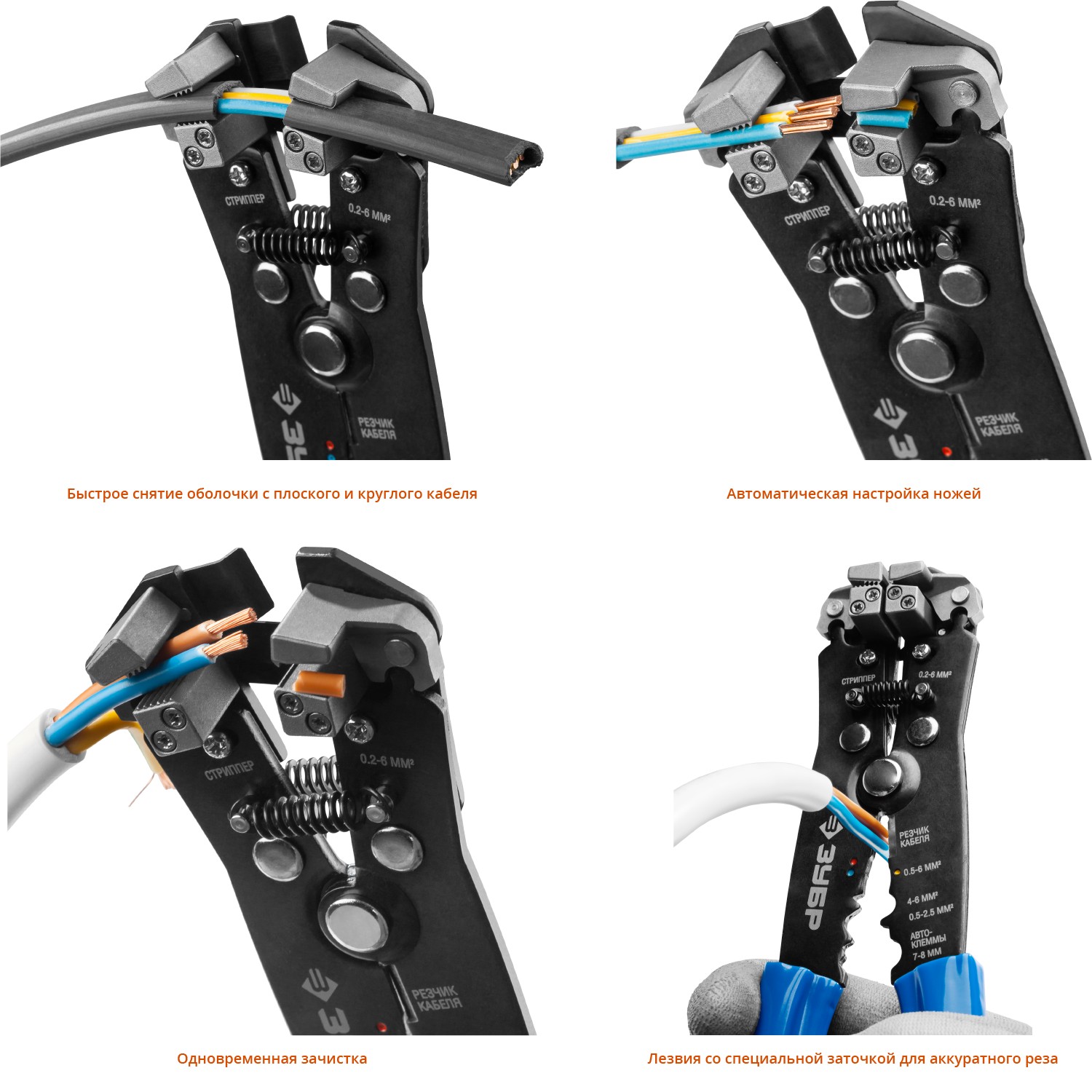 Инструменты для снятия изоляции ЗУБР, изготовлены из высококачественной стали с закалкой рабочих поверхностей, предназначены для профессионального применения. Обладают повышенным ресурсом, обеспечивают высокое качество электромонтажных работ.