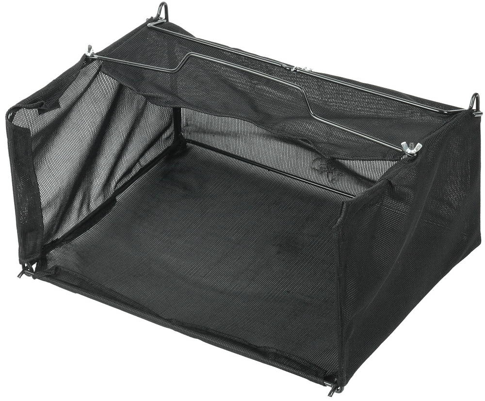 Травосборник подвешивается на ручку газонокосилки при помощи цепочки с кольцом и крепится к раме двумя крюками. Подходит для газонокосилки с шириной рабочей части 405мм.