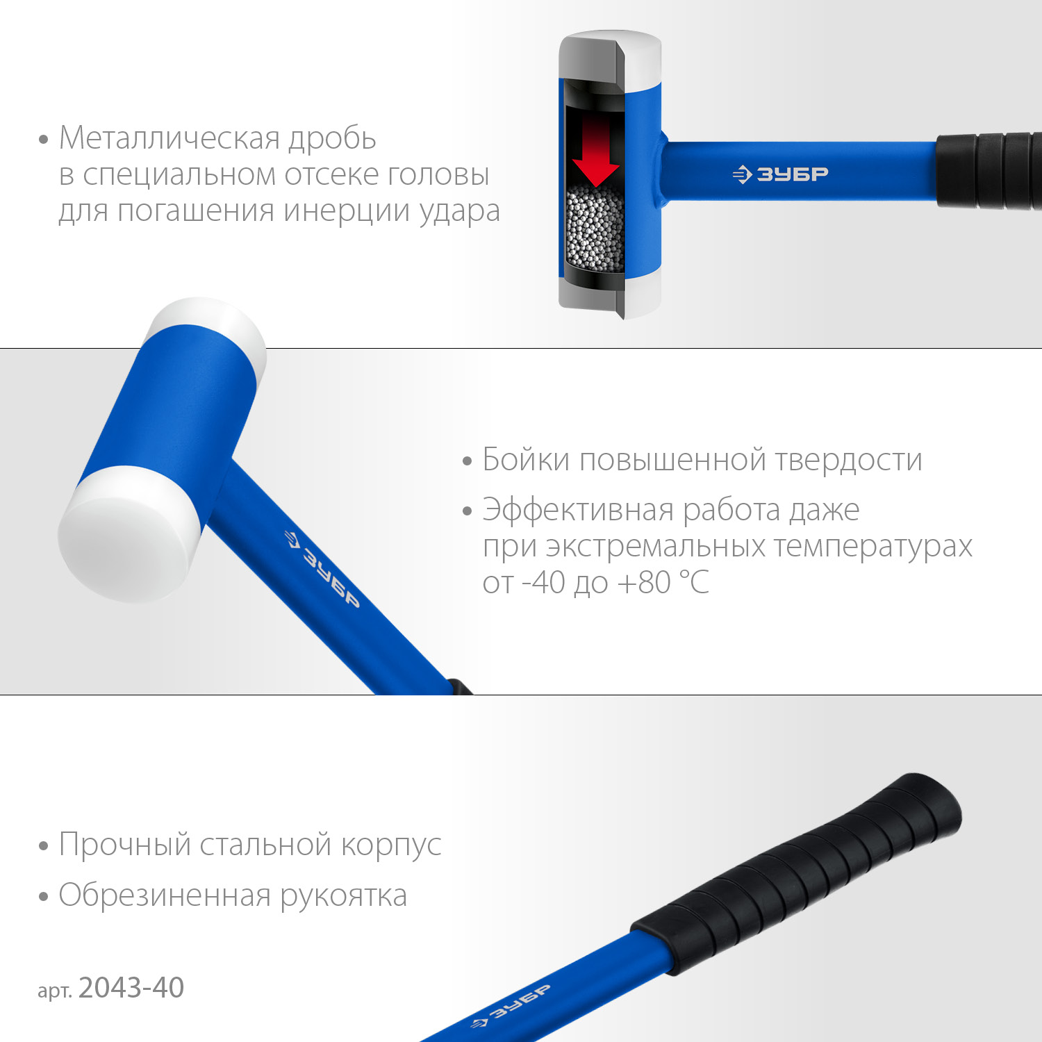 ЗУБР БМП-40 мм, безынерционный молоток с полиамидными бойками, Профессионал (2043-40)