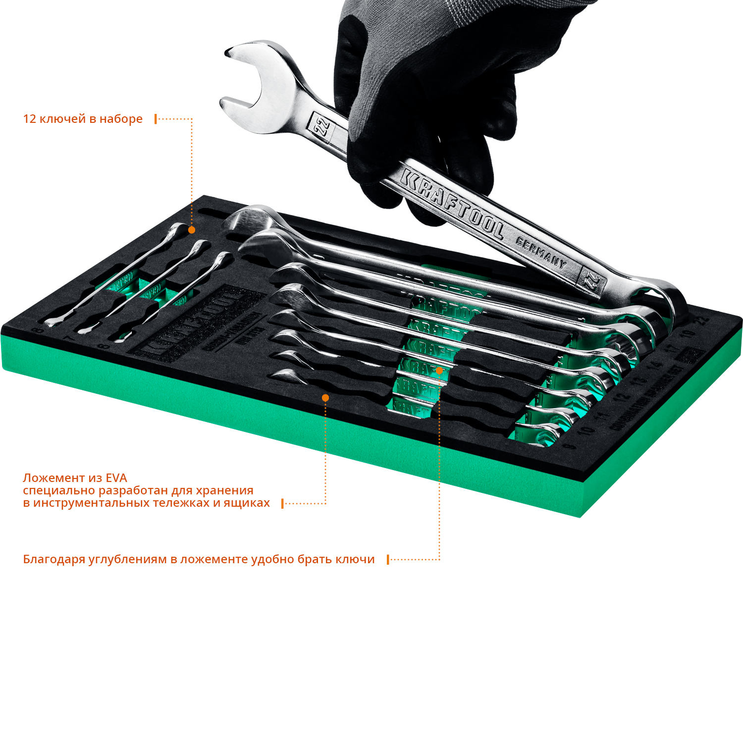 KRAFTOOL 12 шт, 6 - 22 мм, Набор комбинированных гаечных ключей (27079-H12E)
