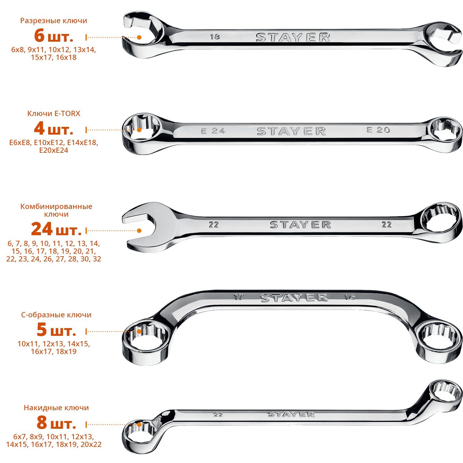STAYER HERCULES, 47 шт, 6 - 32 мм, Набор гаечных ключей универсальный (27082-H47)