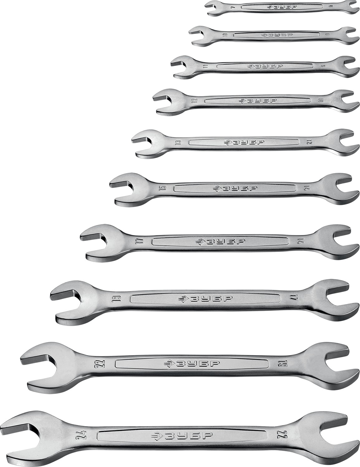 ЗУБР 10 шт, 6-24 мм, Набор рожковых гаечных ключей, Профессионал (27010-H10)