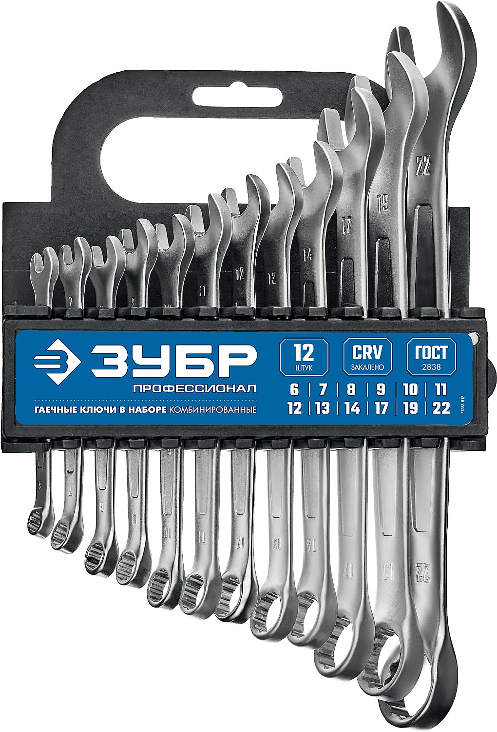 ЗУБР 12 шт, 6 - 22 мм, Набор комбинированных гаечных ключей, Профессионал (27088-H12)