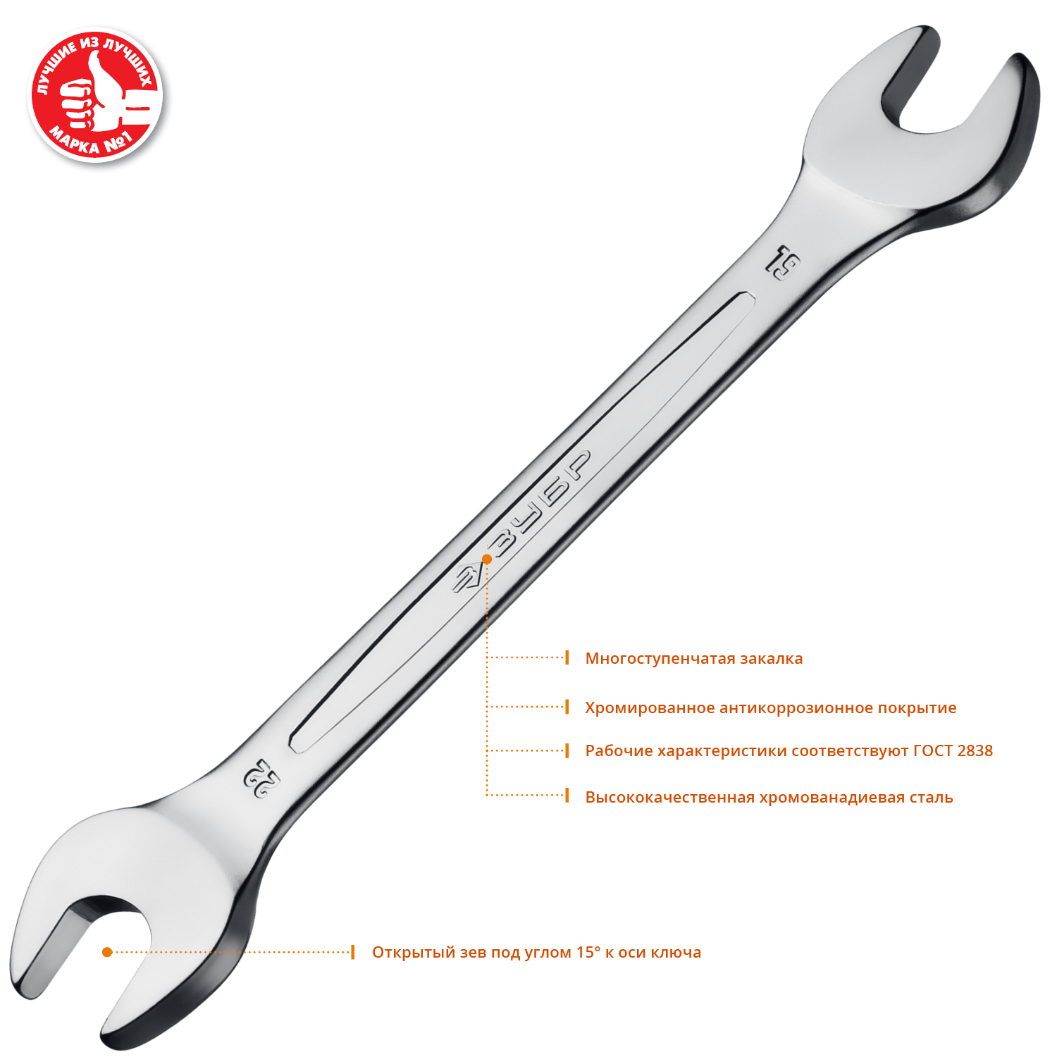 ЗУБР 17х19 мм, Рожковый гаечный ключ, Профессионал (27010-17-19)27010-17-19_z01