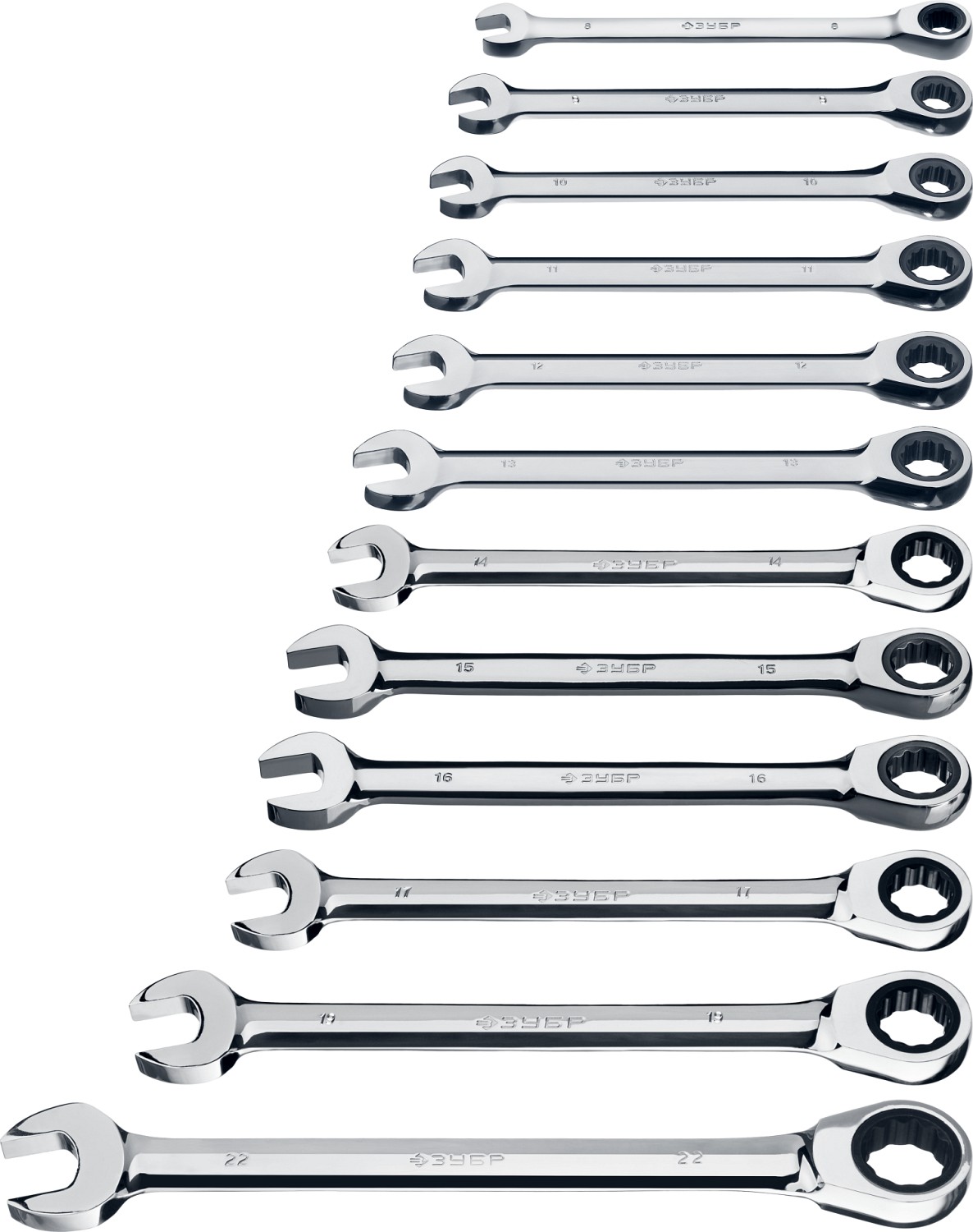 ЗУБР 12 шт, 8-22 мм, Набор комбинированных трещоточных гаечных ключей, Профессионал (27075-H12)