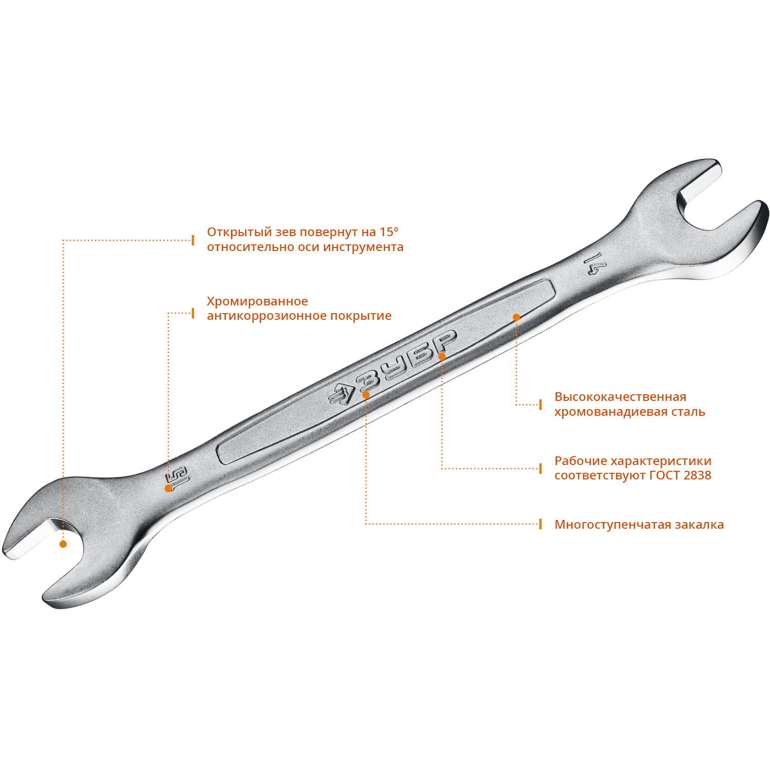 ЗУБР 14х15 мм, Рожковый гаечный ключ, Профессионал (27010-14-15)