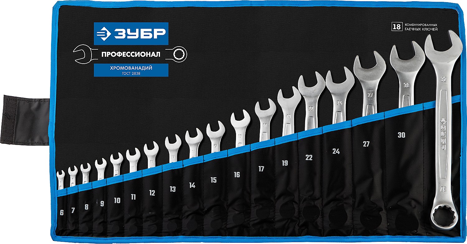 ЗУБР 18 шт, 6 - 32 мм, Набор комбинированных гаечных ключей, Профессионал (27087-H18)