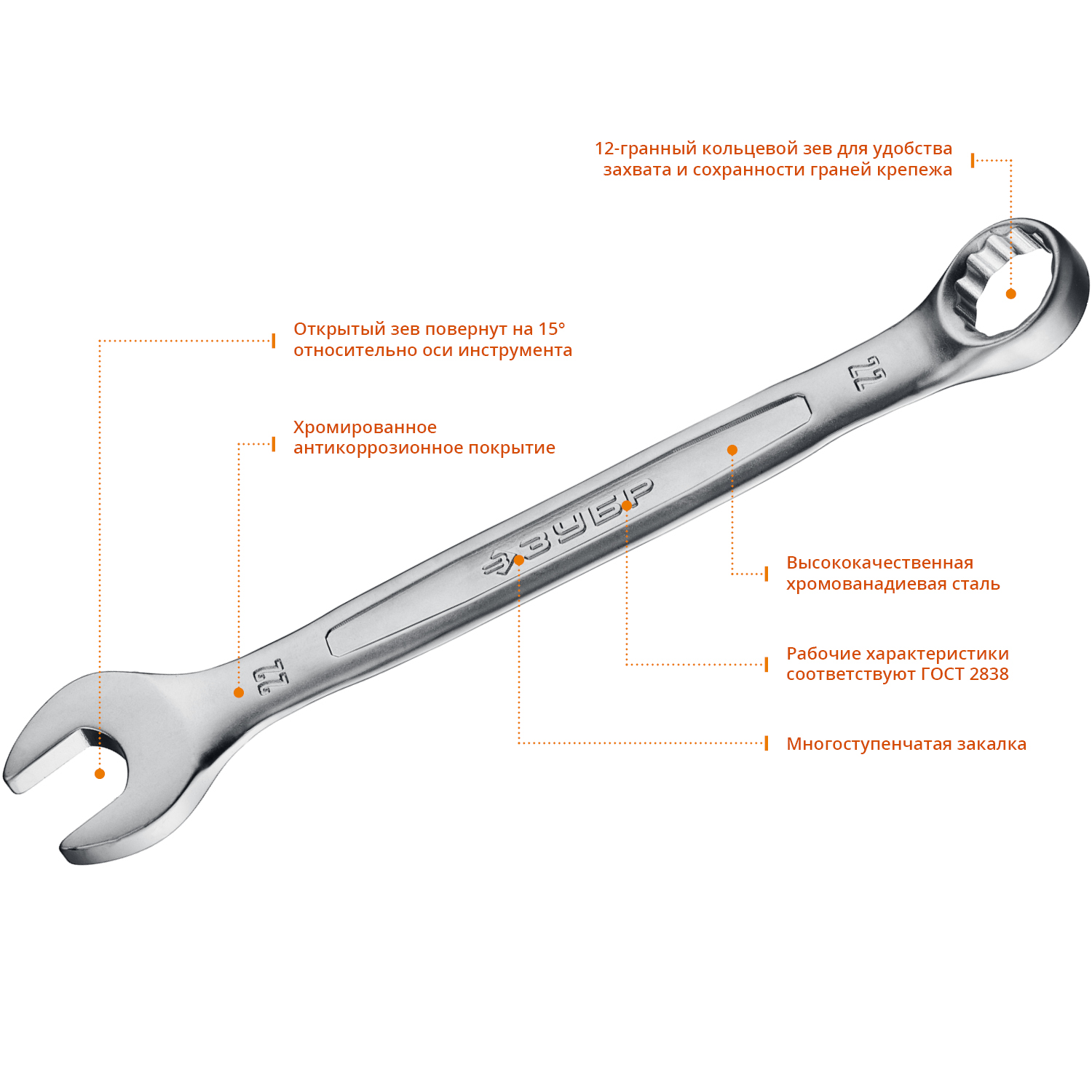 ЗУБР 22 мм, Комбинированный гаечный ключ, Профессионал (27087-22)