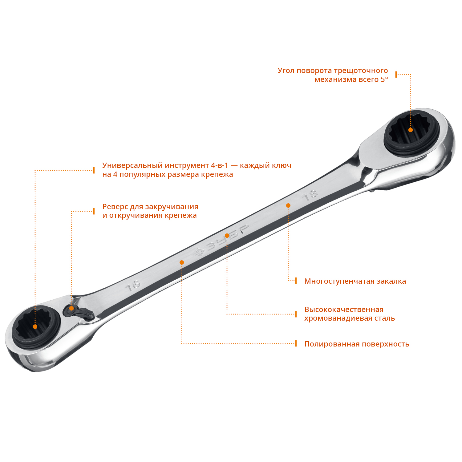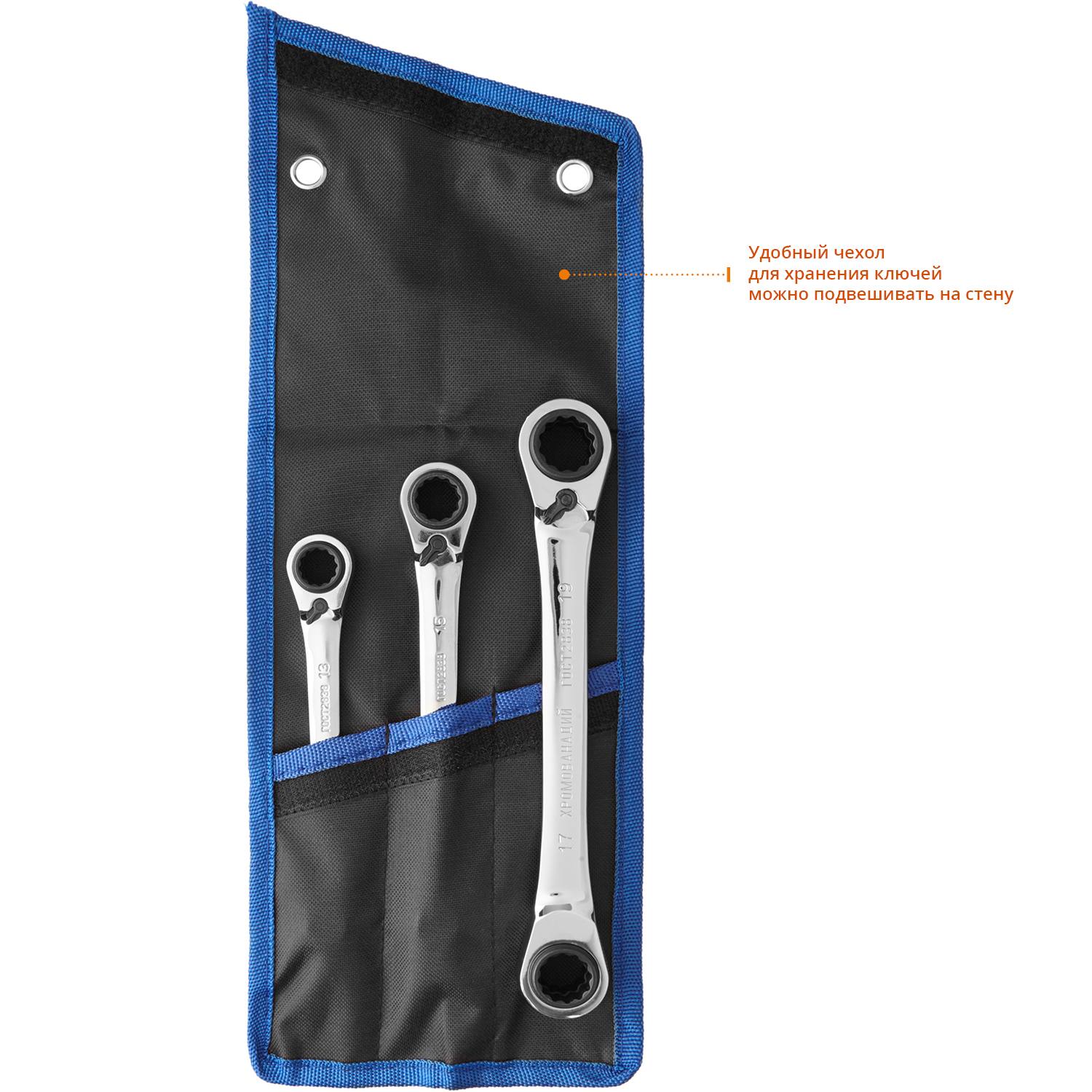 ЗУБР 3 шт, Набор накидных трещоточных гаечных ключей (27105-H3)