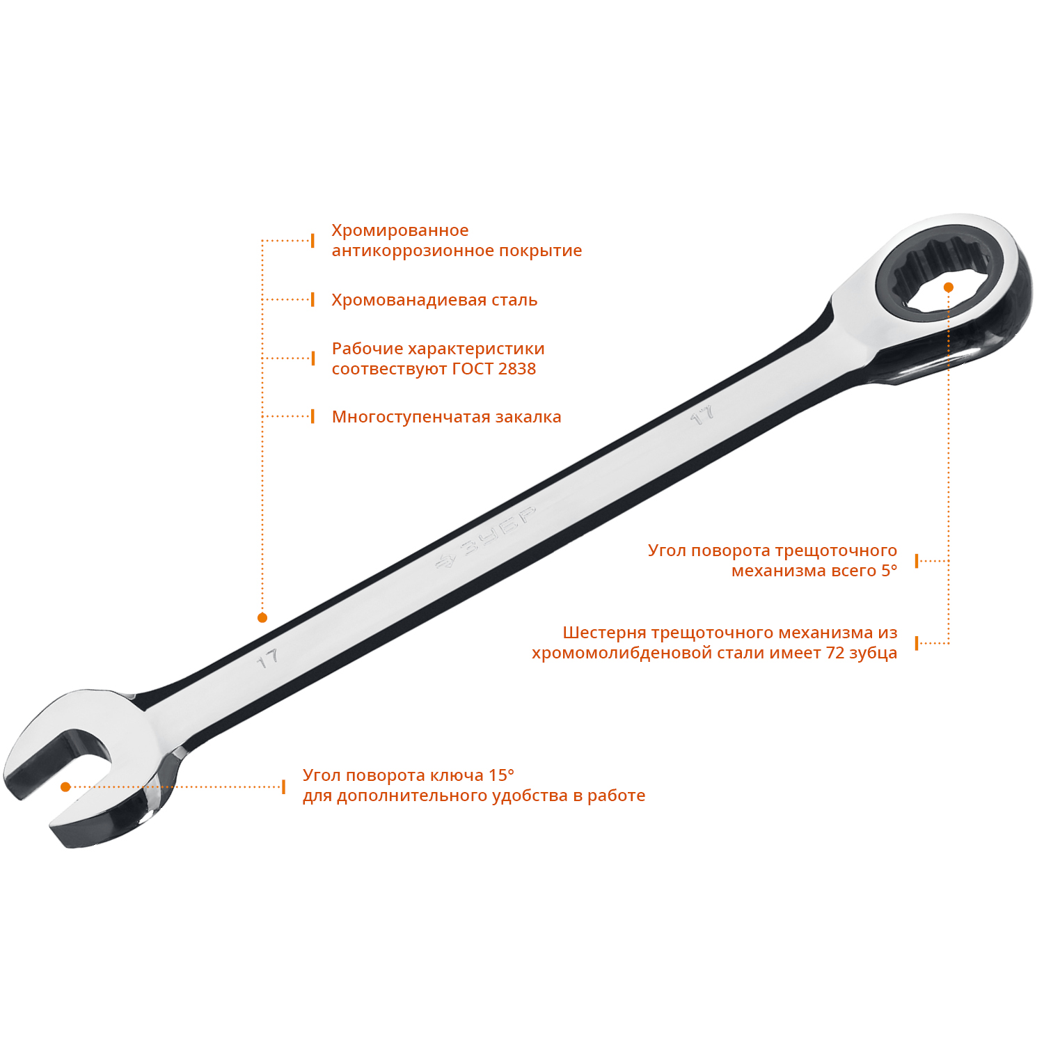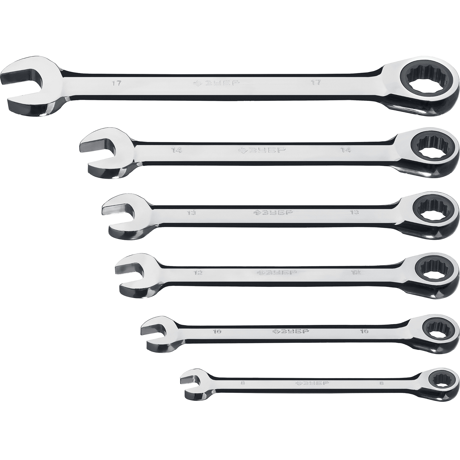 ЗУБР 6 шт, 8-17 мм, Набор комбинированных трещоточных гаечных ключей, Профессионал (27074-H6)