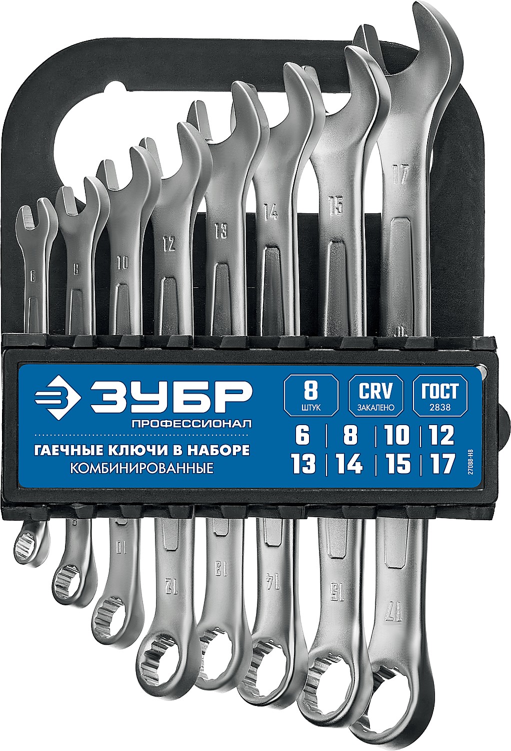 ЗУБР 8 шт, 6 - 17 мм, Набор комбинированных гаечных ключей, Профессионал (27088-H8)