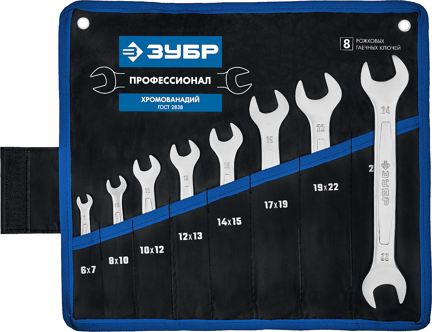 ЗУБР 8 шт, 6-24 мм, Набор рожковых гаечных ключей, Профессионал (27010-H8)