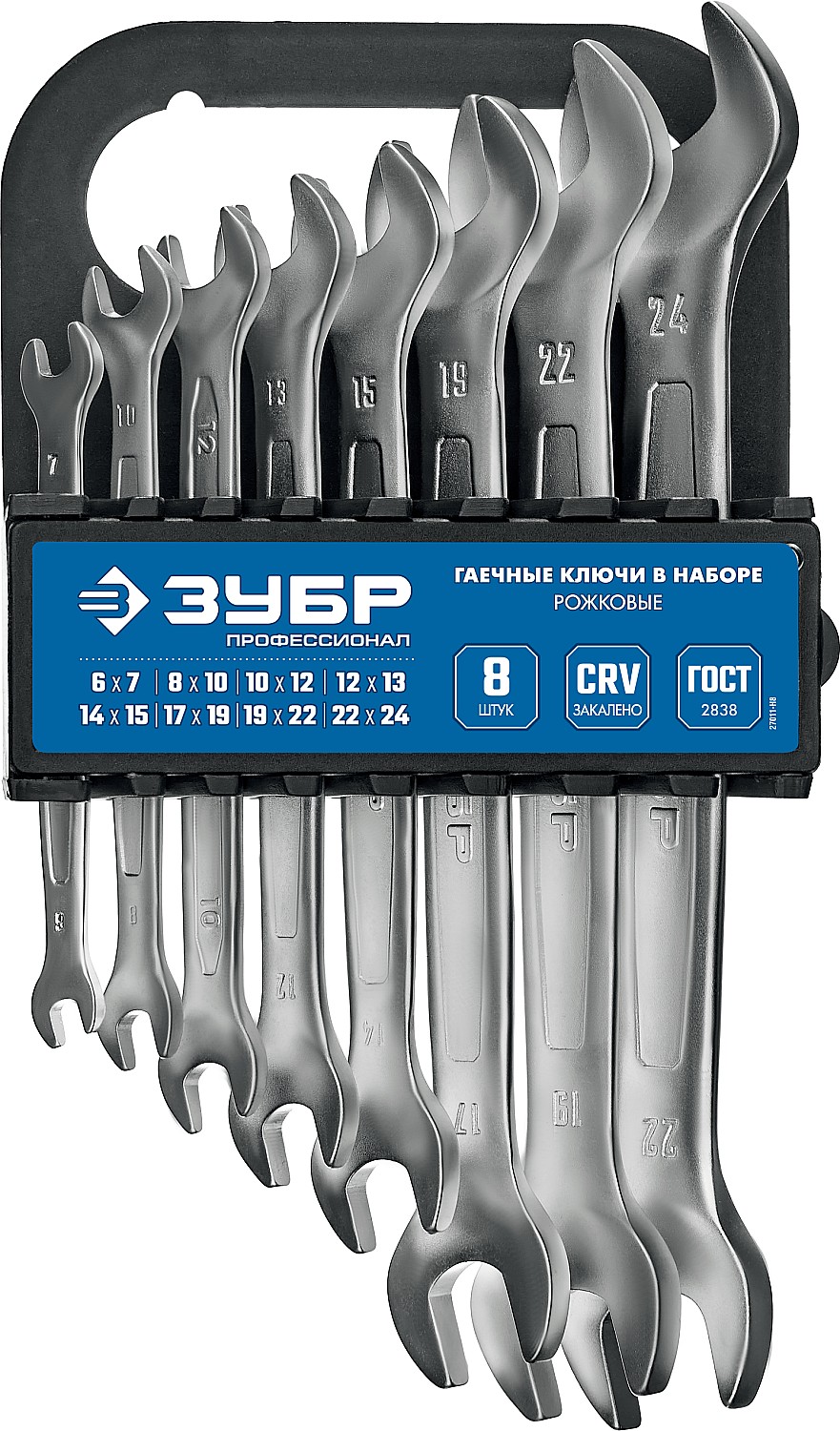 ЗУБР 8 шт, 6-24 мм, Набор рожковых гаечных ключей, Профессионал (27011-H8)
