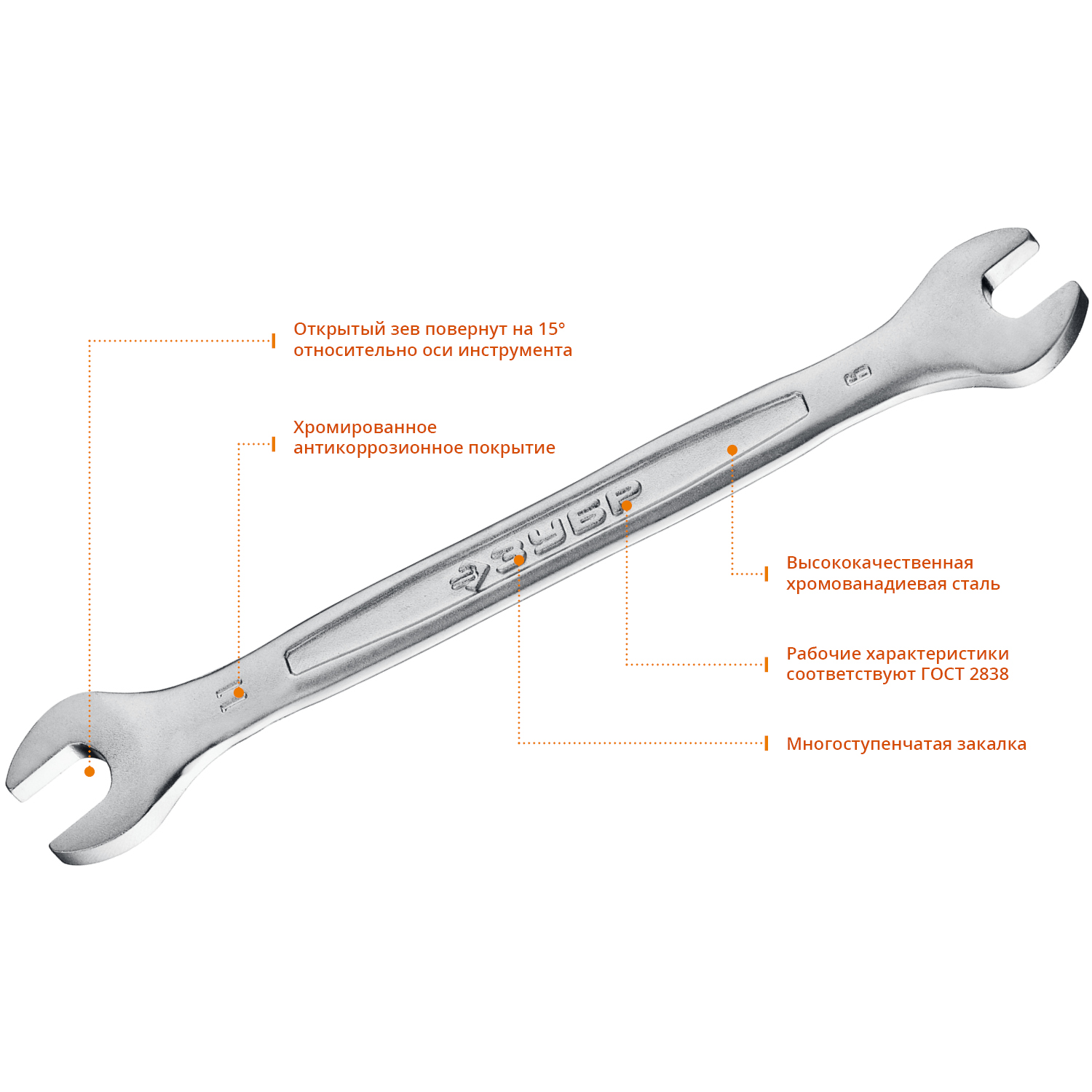 ЗУБР 9х11 мм, Рожковый гаечный ключ, Профессионал (27010-09-11)