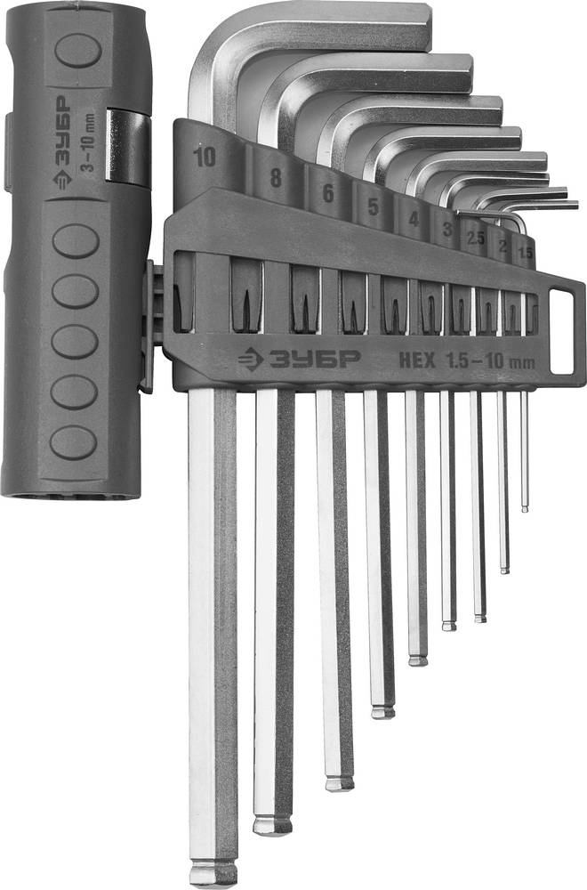 Профессиональные имбусовые ключи ЗУБР предназначены для индустриального применения. Выдерживают интенсивные нагрузки в течение длительного времени.