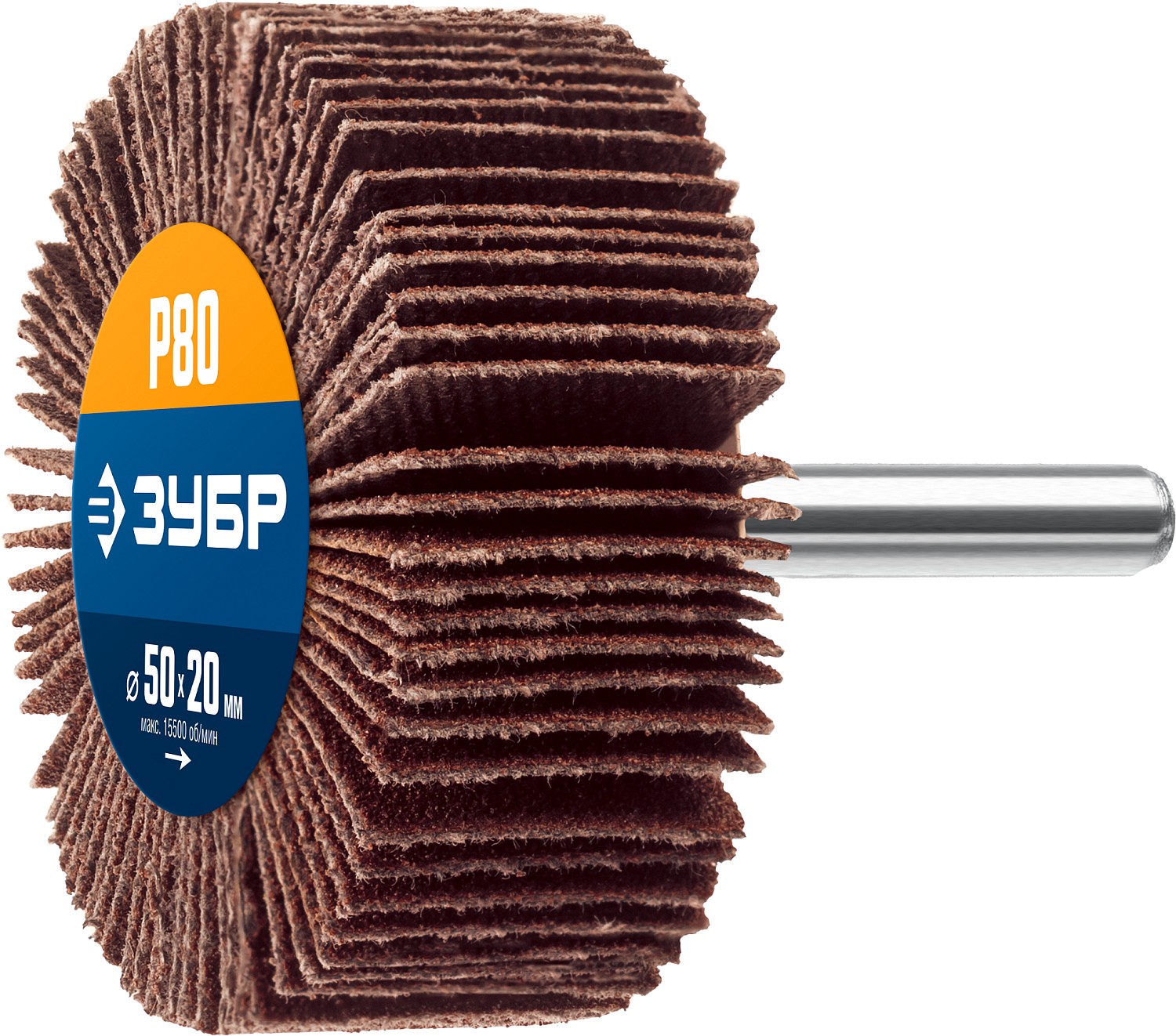 ЗУБР d 50 x 20 мм, P80, на шпильке d 6 мм, Круг шлифовальный лепестковый, Профессионал (36601-080)