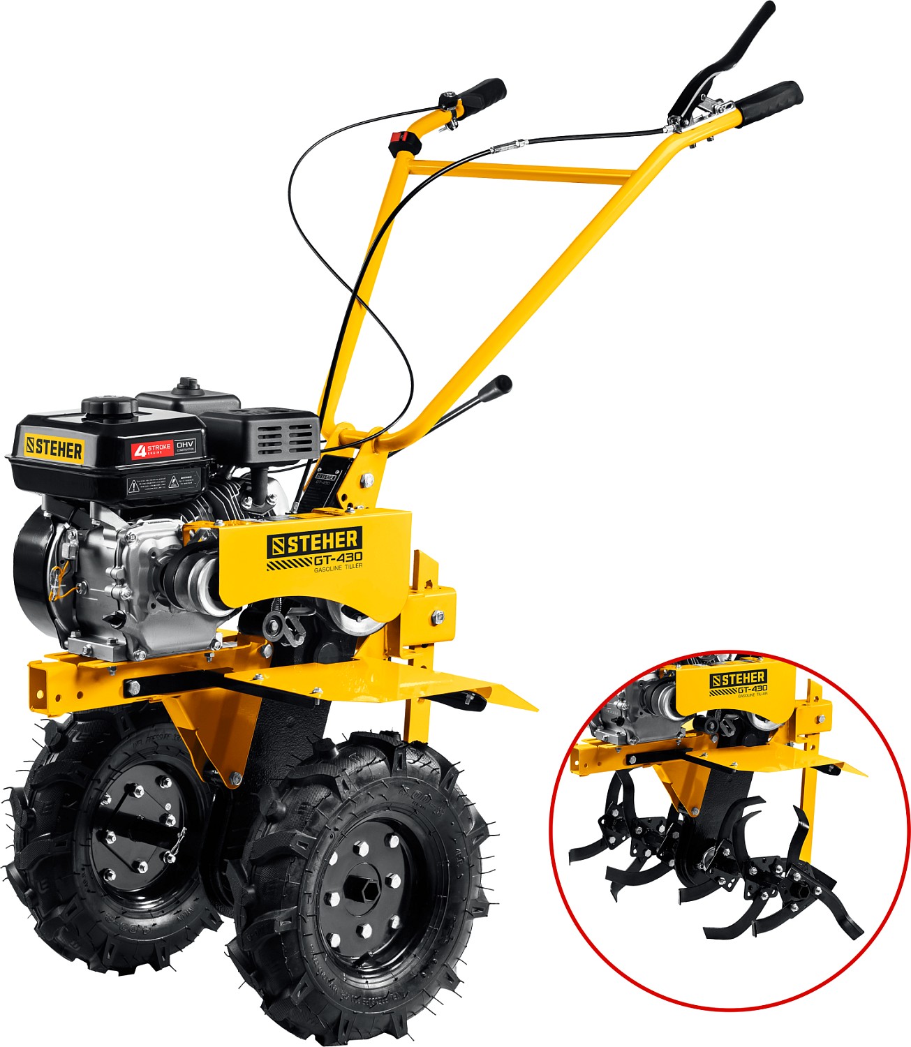 - Большие пневматические колеса обеспечивают отличную проходимость