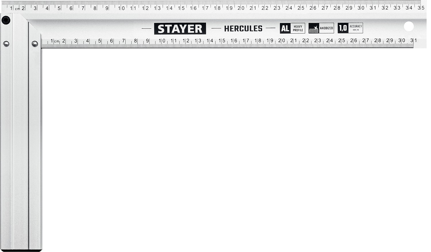 • Мощное алюминиевое основание упрощает разметку при выполнении столярных работ.