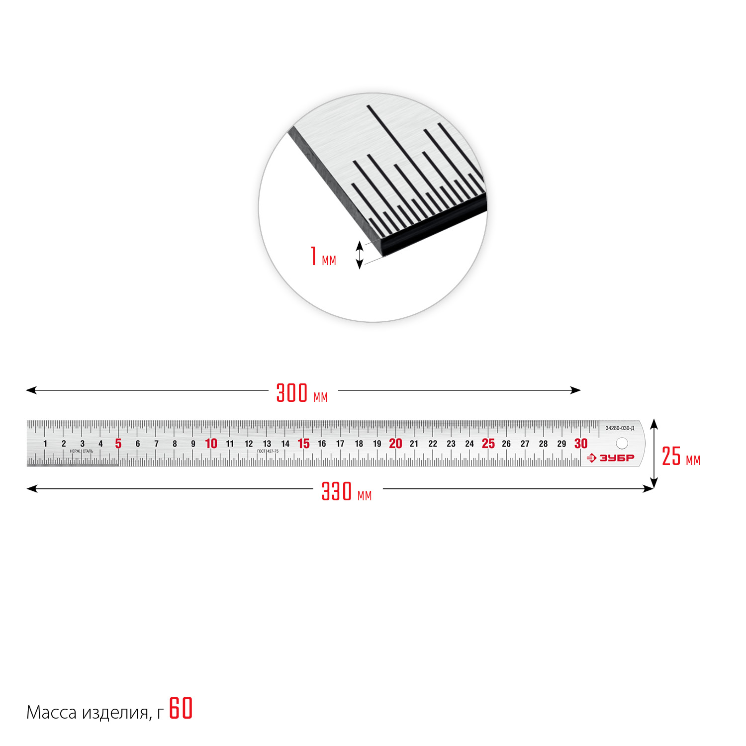 - Усиленное полотно из нержавеющей стали с травлёной шкалой увеличивает срок службы инструмента.