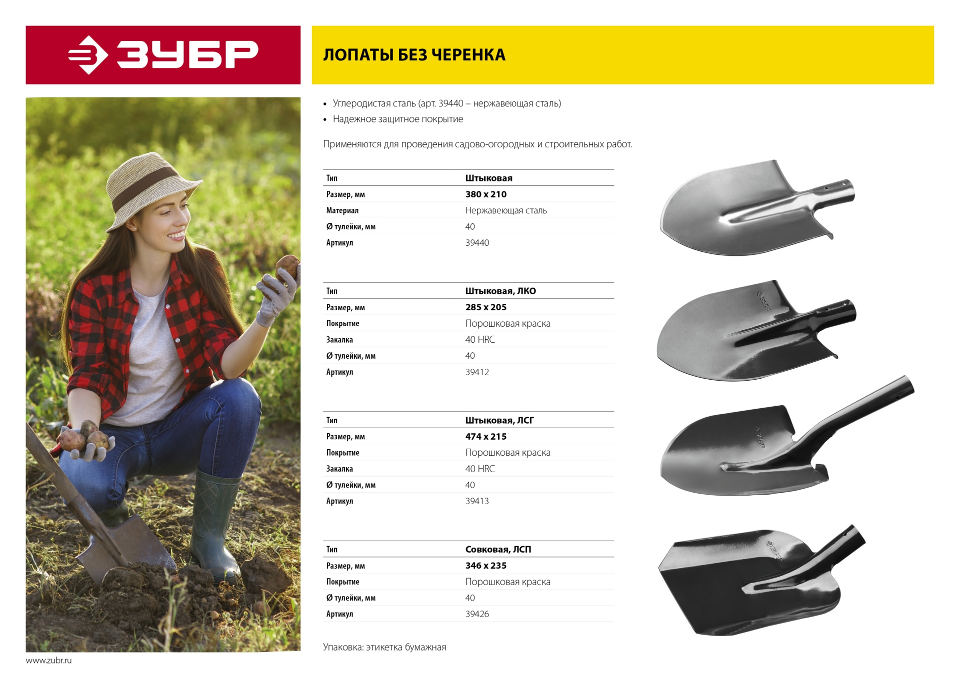 ЗУБР Мастер, 370х205мм, полотно 1.6мм, закалено, без черенка, штыковая лопата, тип ЛКО (39412)